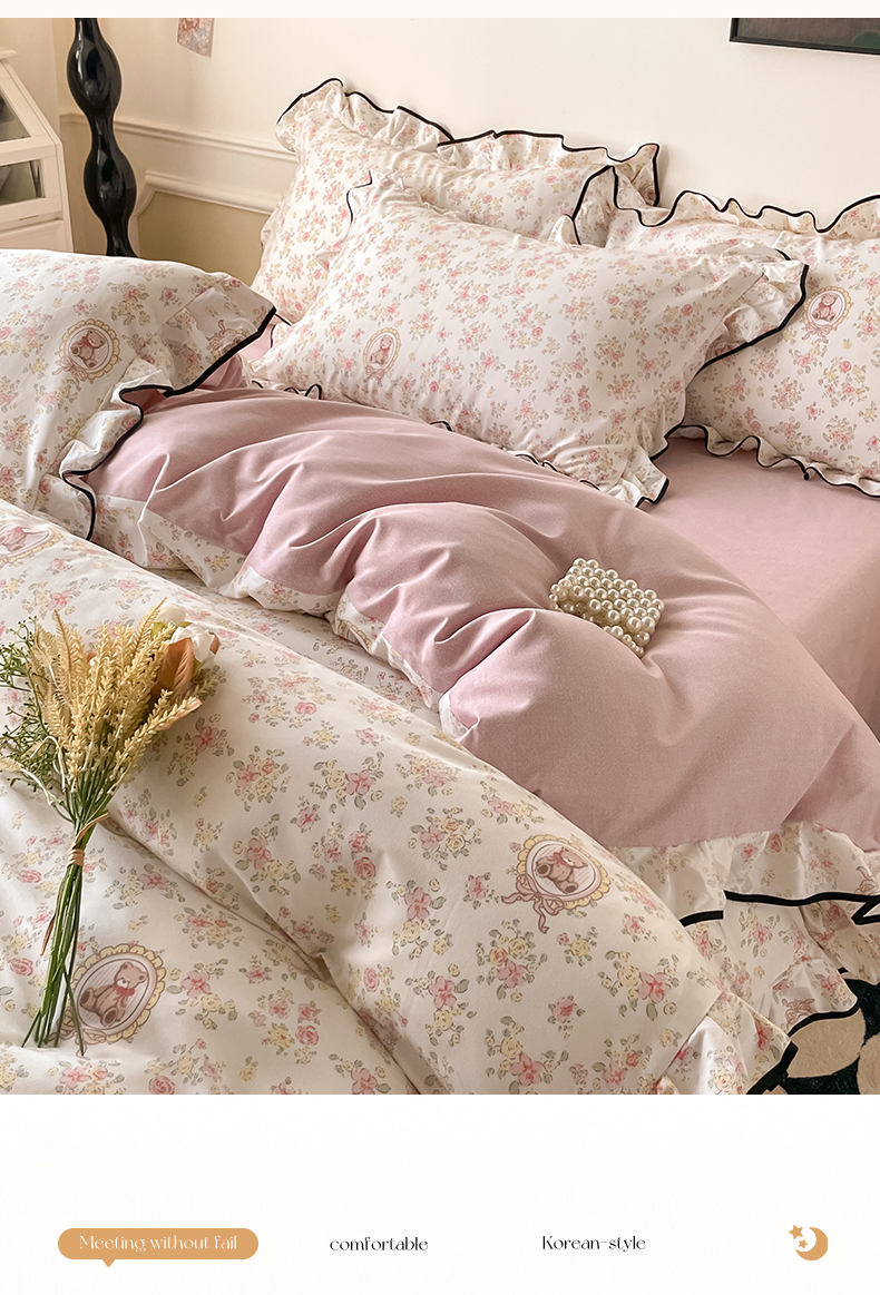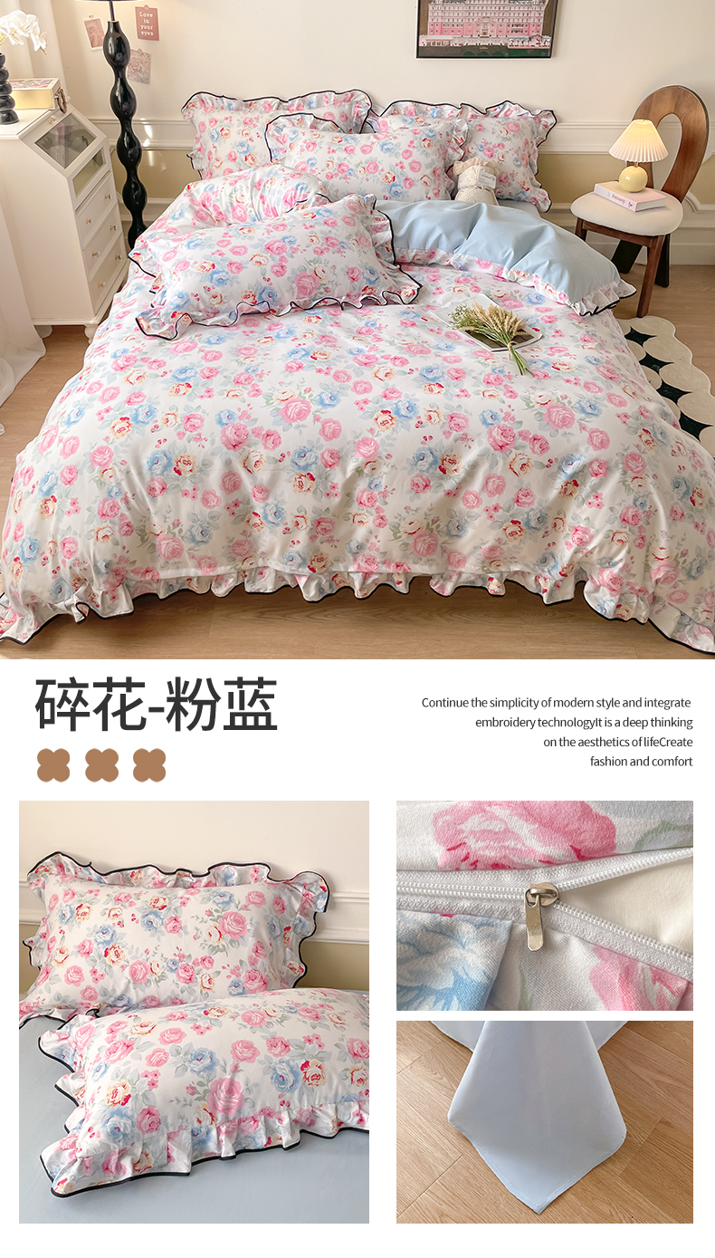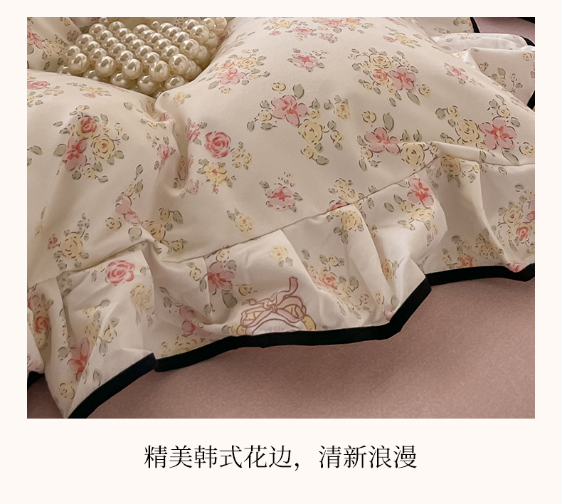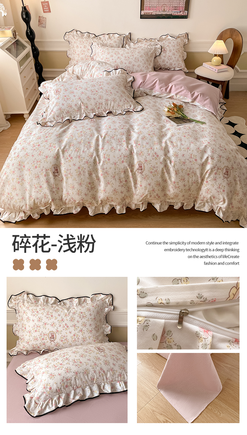 商品名称:义博家纺 2025新款韩版花边印花四件套四件套 碎花-浅粉