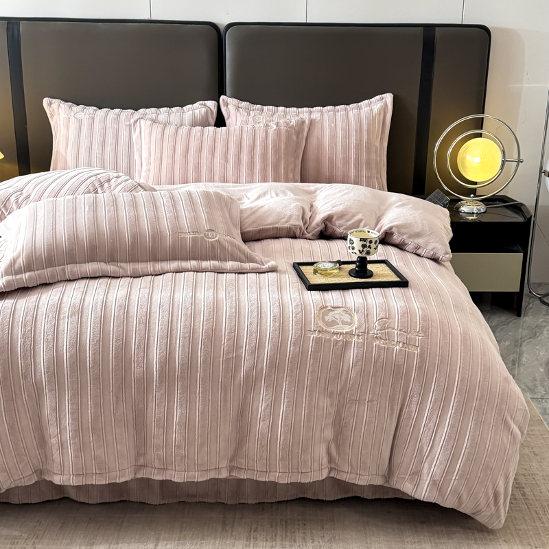 保罗圣迪奥 2025新款230克牛奶绒压花绣花四件套-沐凡 沐凡-粉