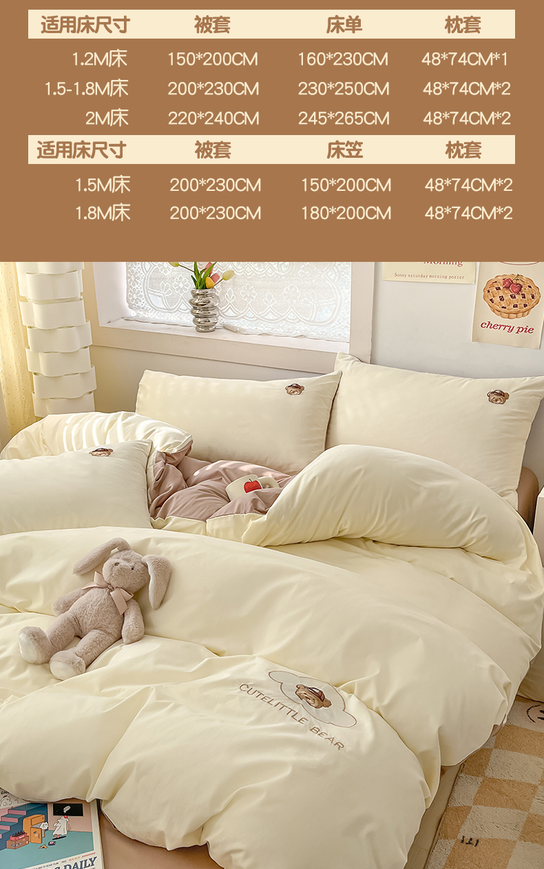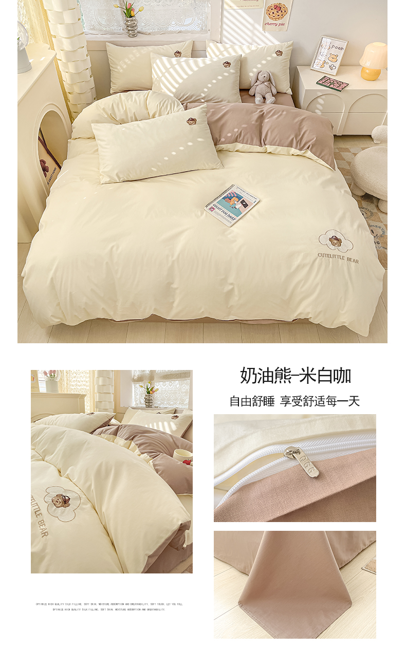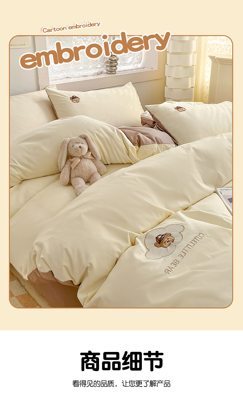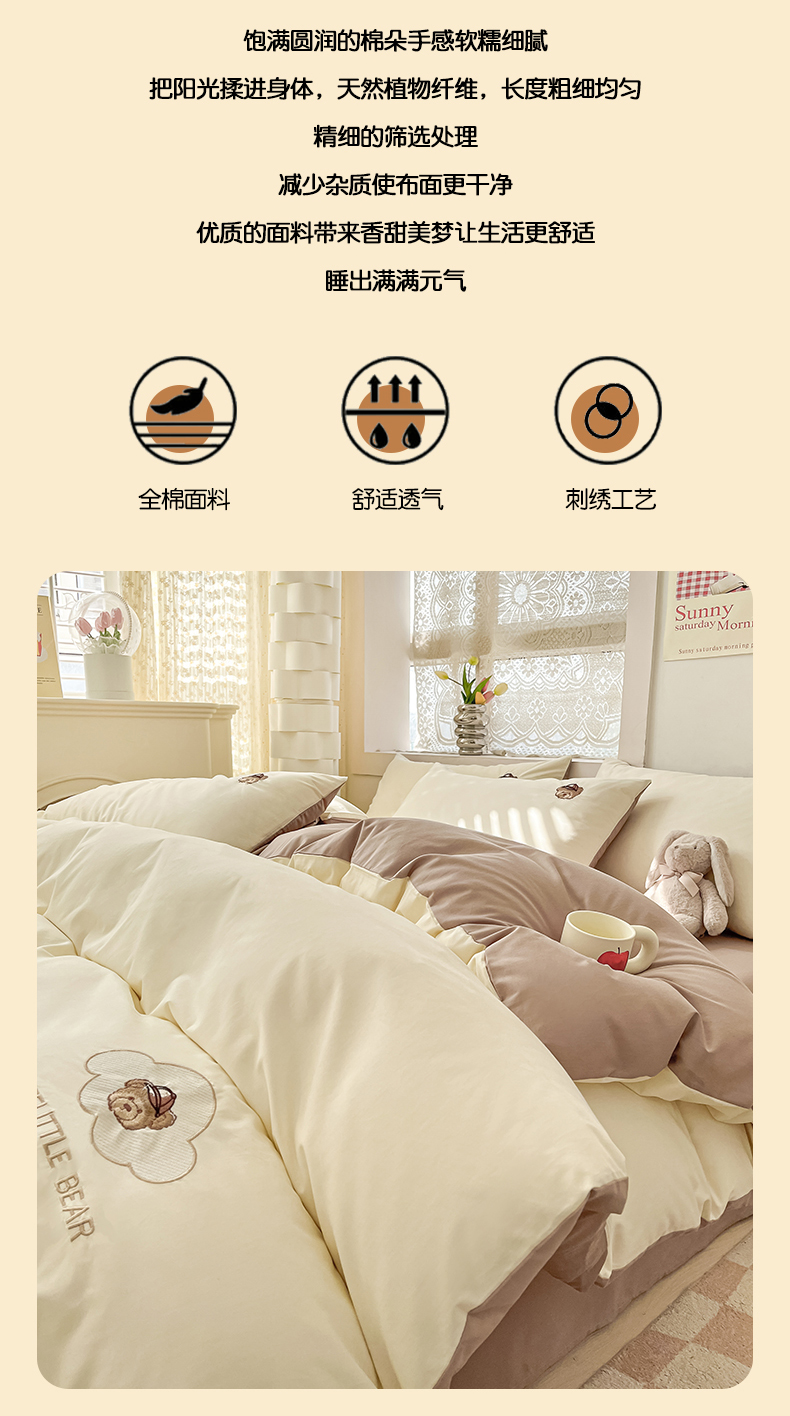 当前位置: 91家纺网 > 商品网购 > 床品套件 > 四件套 > 全棉普通四件套 > 琪格格纺织 2025新款40s全棉纯棉小熊绣花系列四件套 奶油熊-米白咖