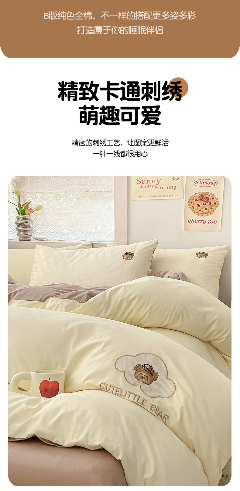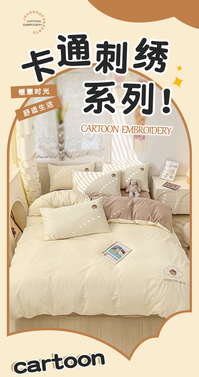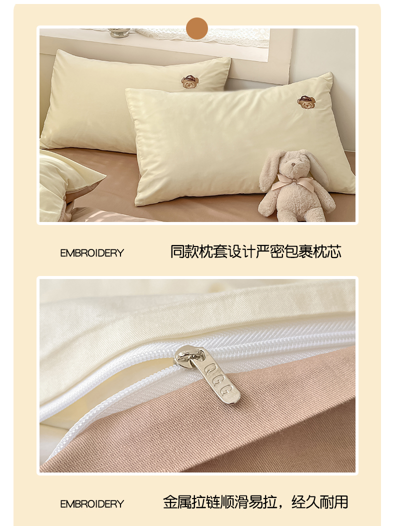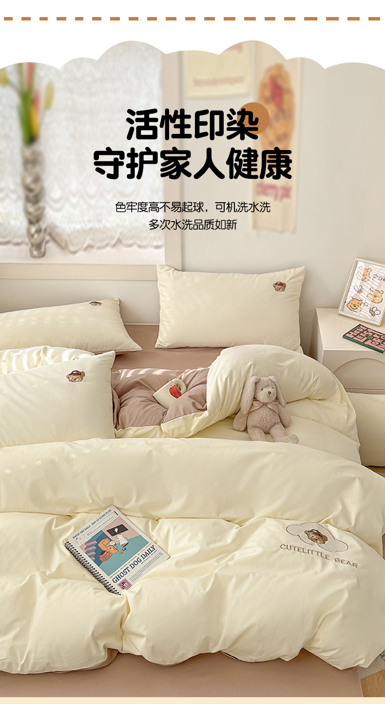 当前位置: 91家纺网 > 商品网购 > 床品套件 > 四件套 > 全棉普通四件套 > 琪格格纺织 2025新款40s全棉纯棉小熊绣花系列四件套 奶油熊-米白咖