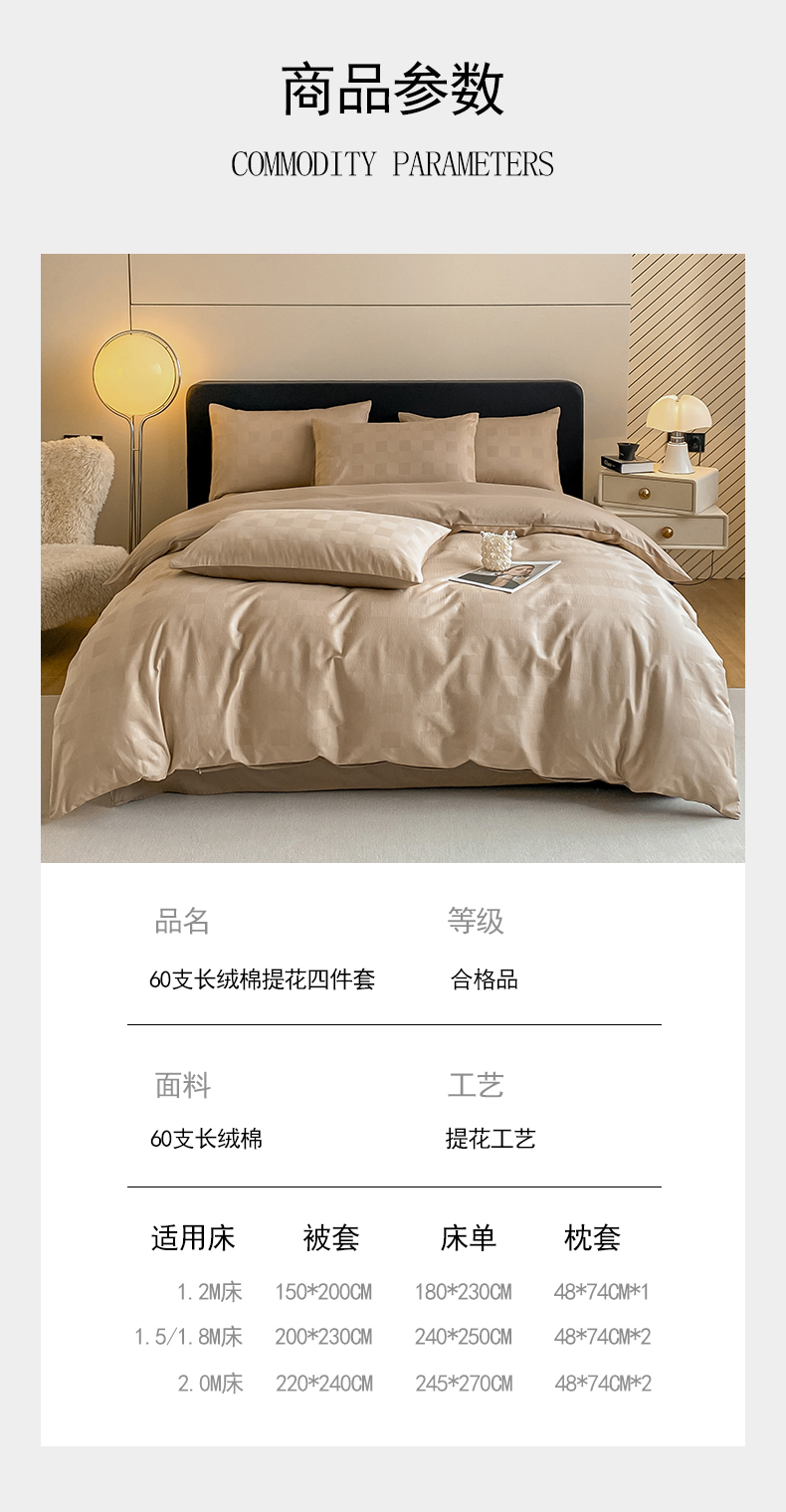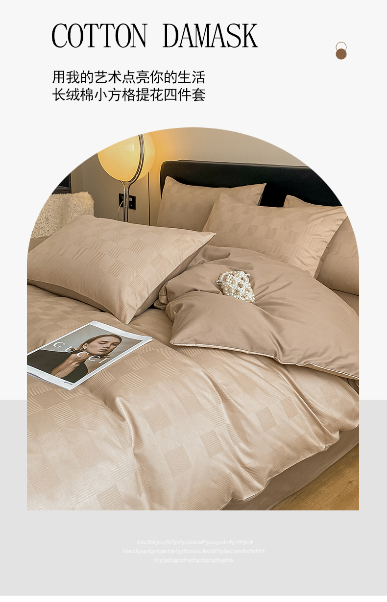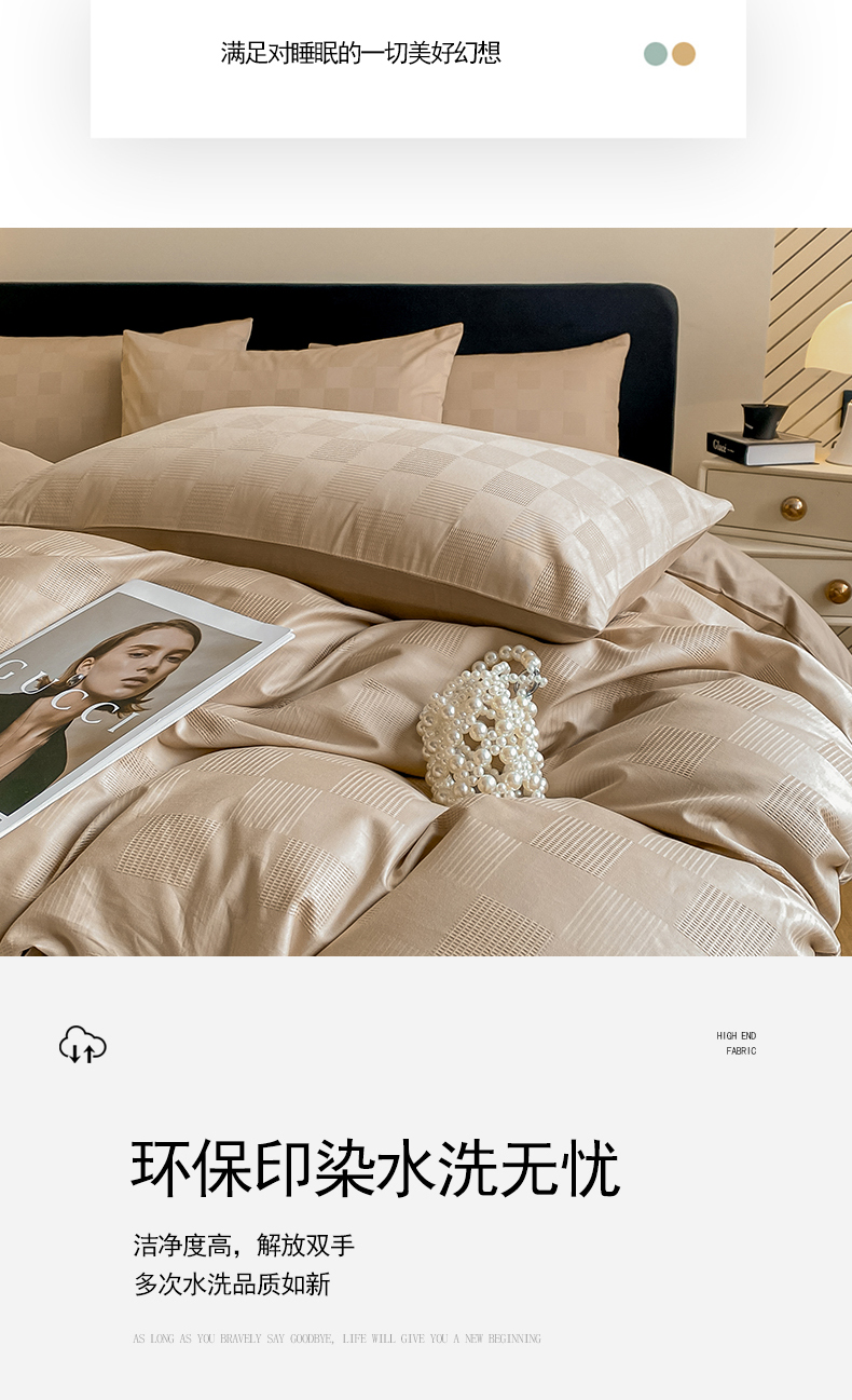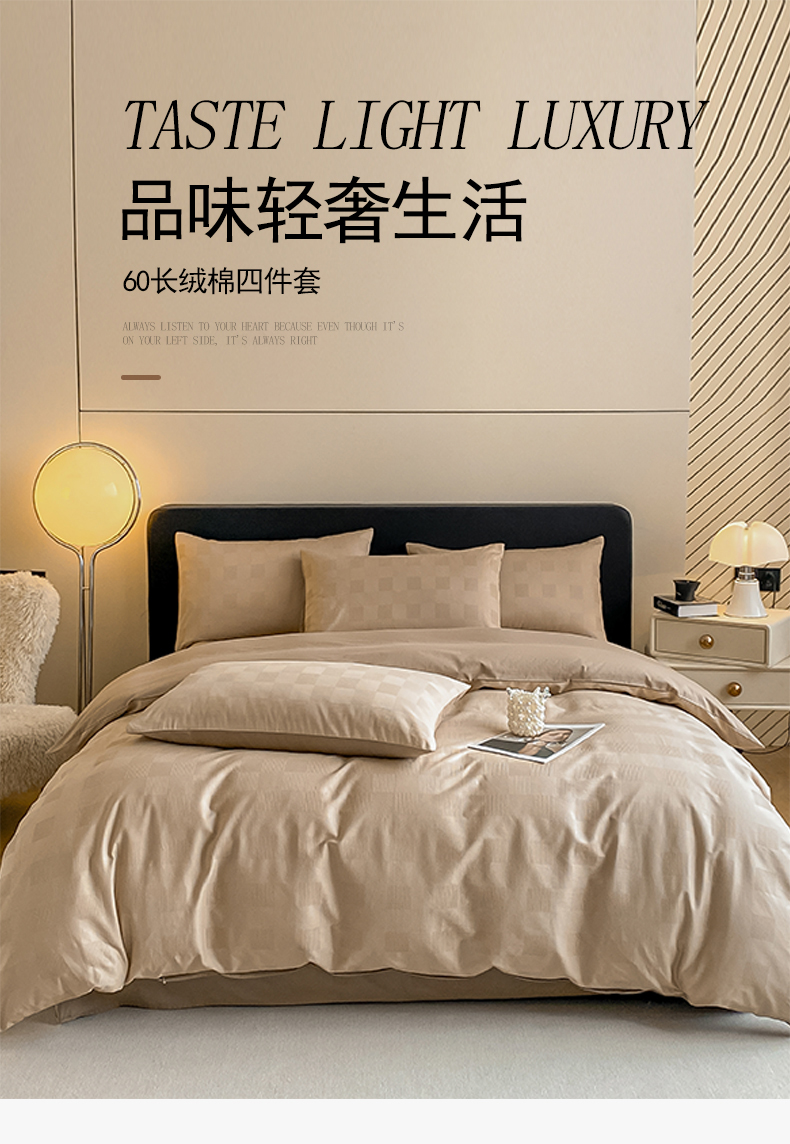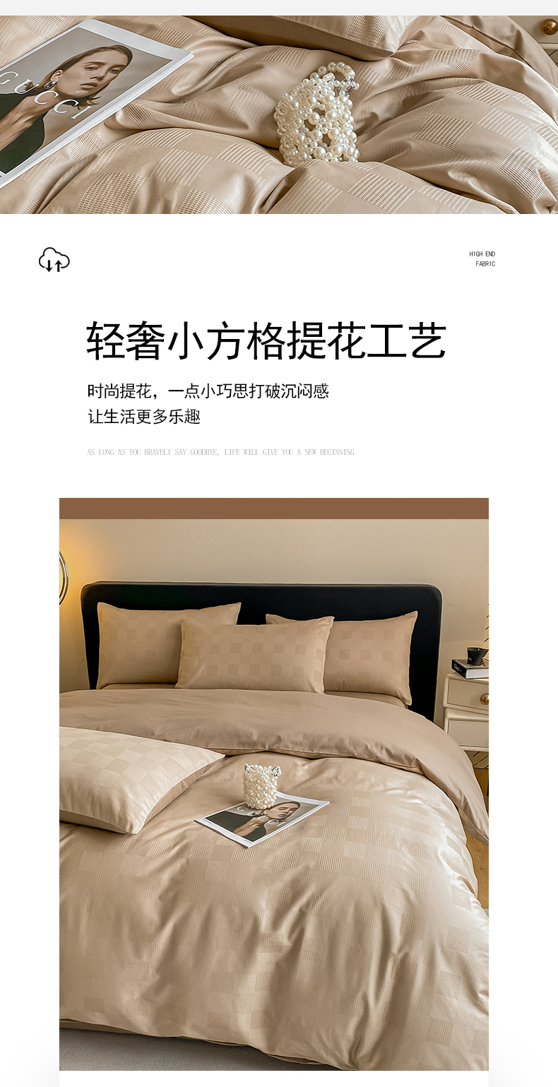 当前位置: 91家纺网 > 商品网购 > 床品套件 > 四件套 > 全棉普通四件套 > 琪格格纺织 2025新款60S长绒棉纯棉小方格四件套单被套 60长绒棉 简格亚麻棕
