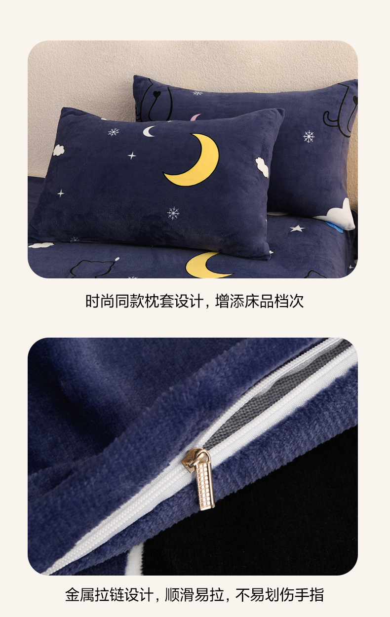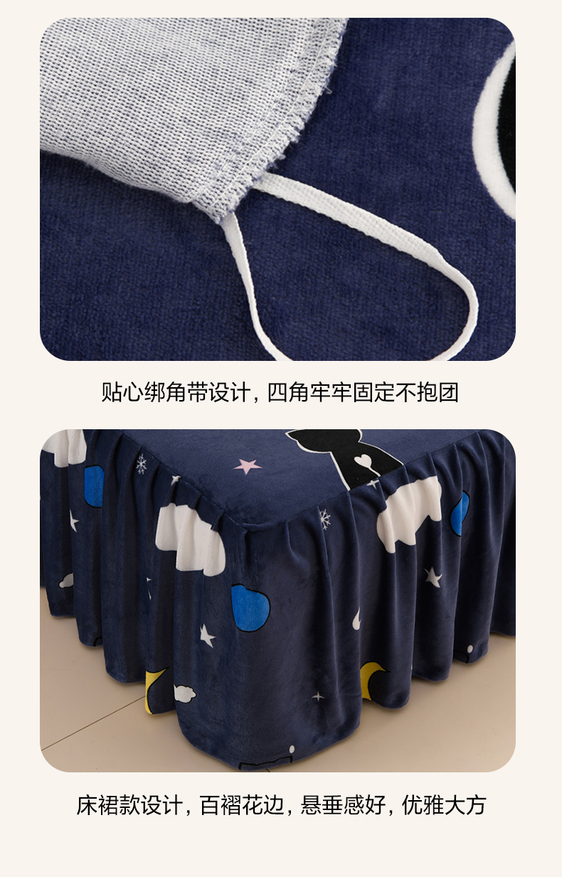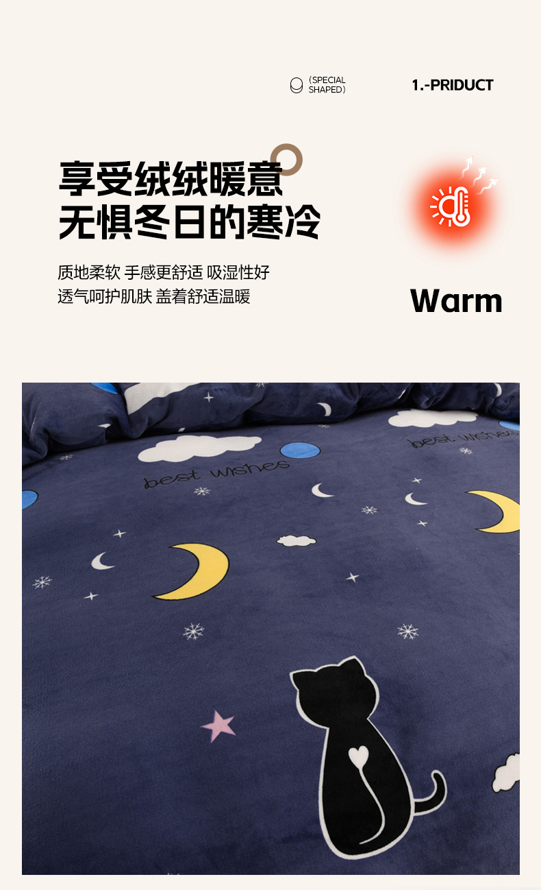 商品名称:圣靓 2025新款高克重牛奶绒四件套印花床裙款 晚安喵喵