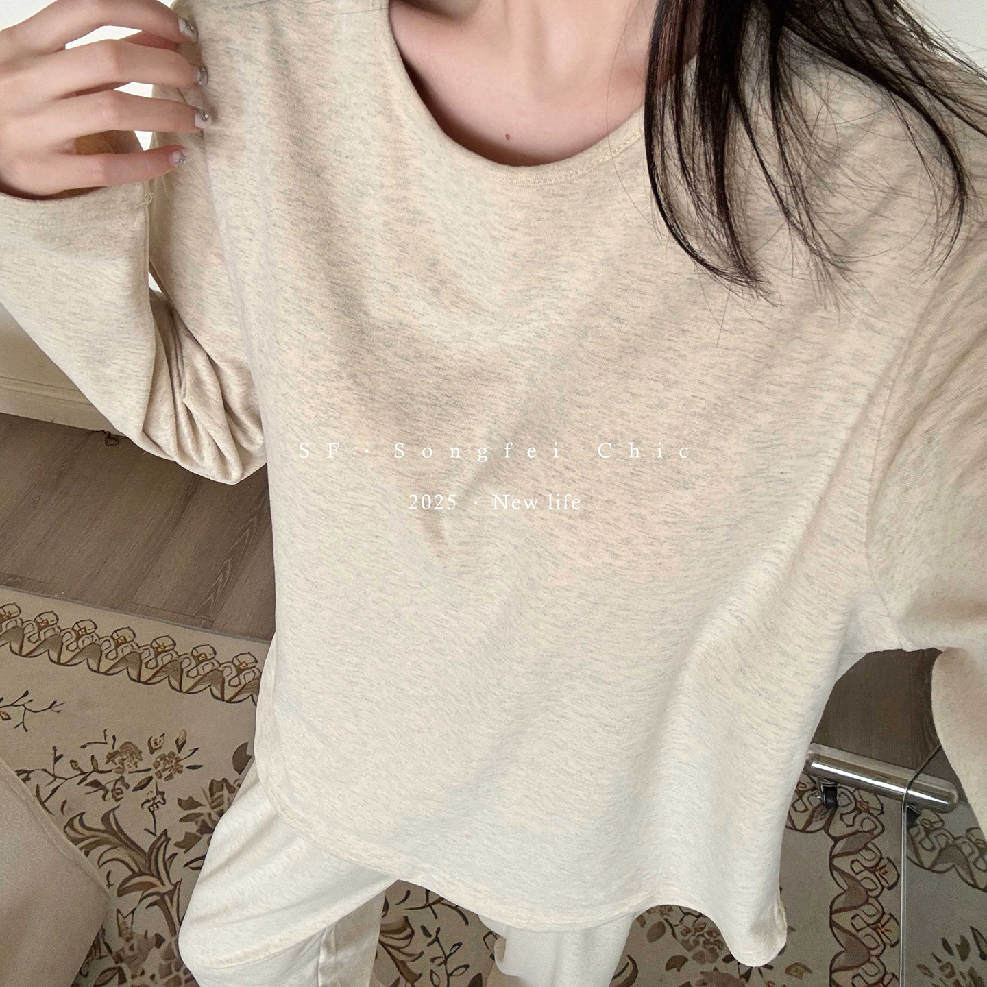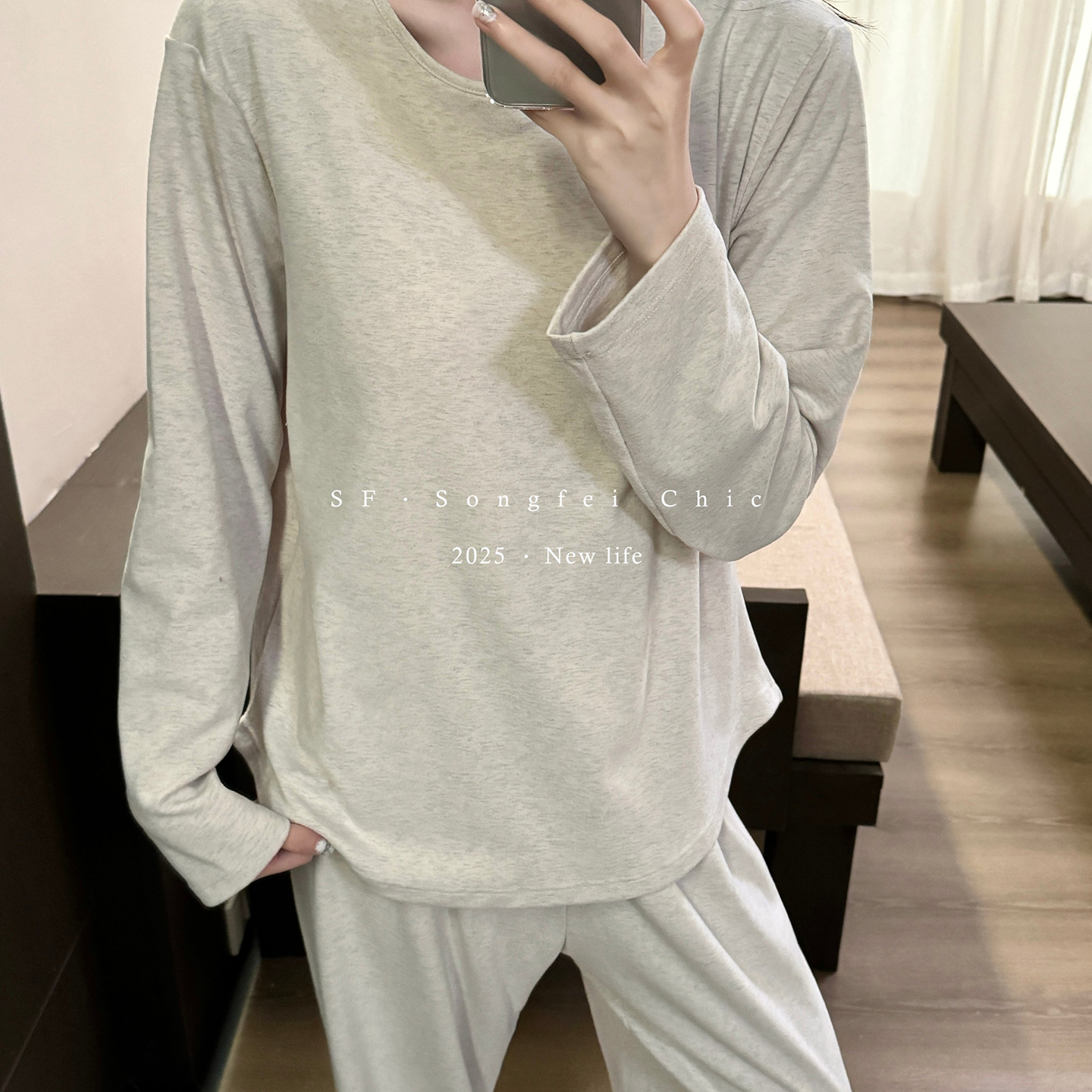 当前位置: 91家纺网 > 商品网购 > 居家日用 > 睡衣 > 妍景家居生活馆 2025新款D-3734 自带胸垫款纯色圆领款 米灰