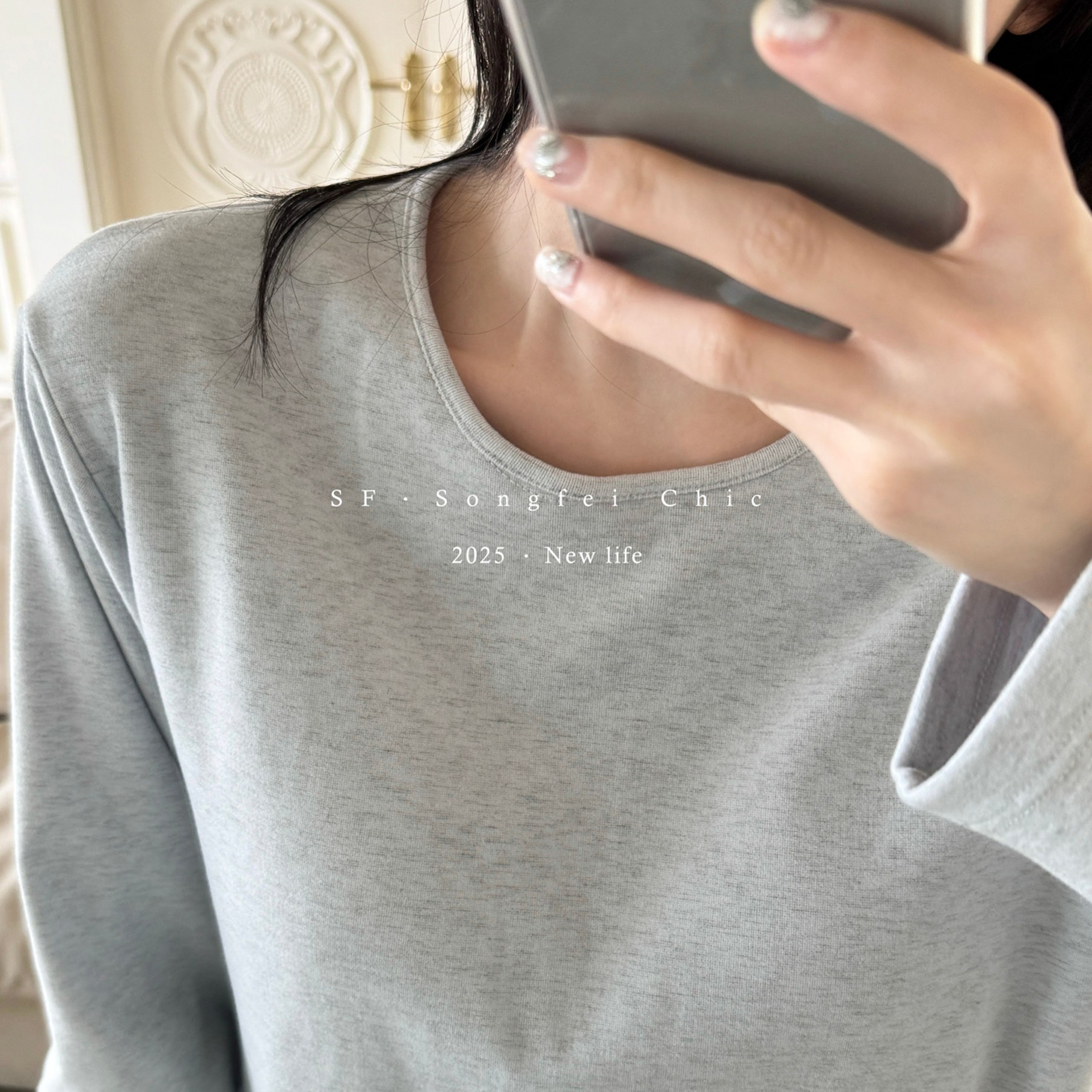 妍景家居生活馆 2025新款D-3734 自带胸垫款纯色圆领款 米灰