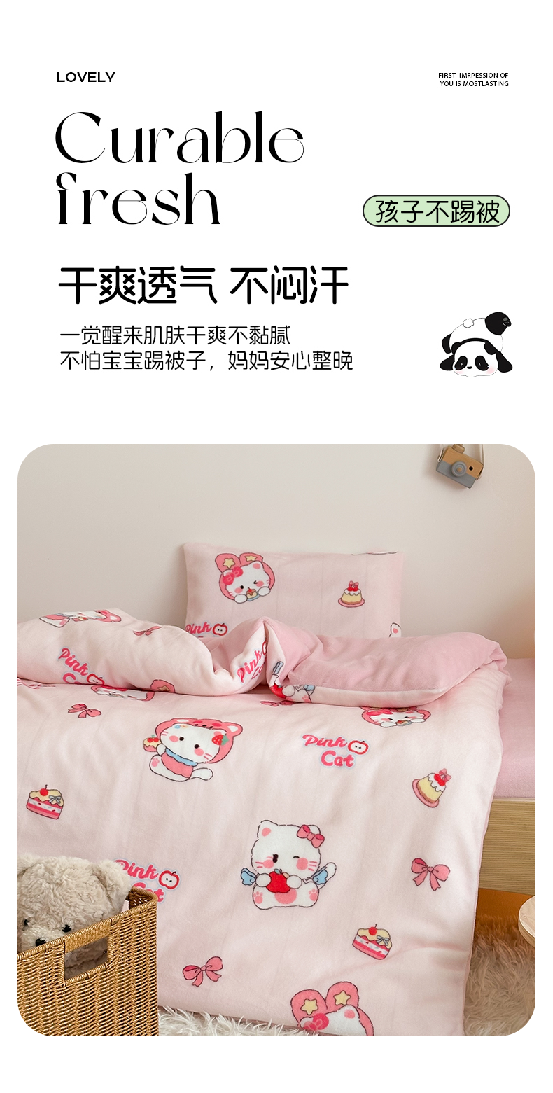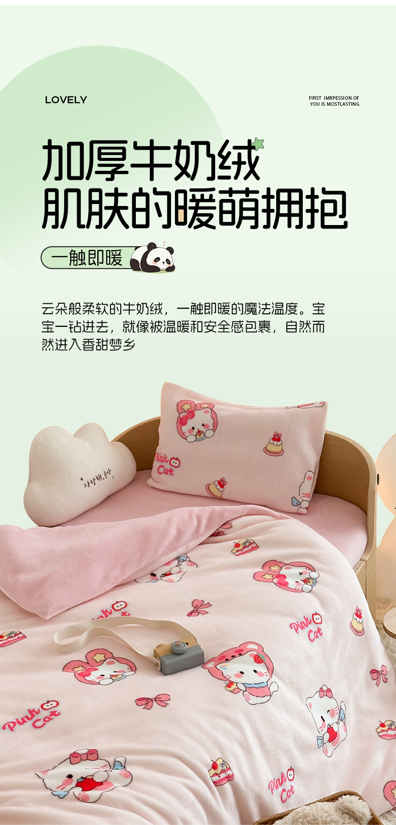 当前位置: 91家纺网 > 商品网购 > 婴童用品 > 婴童三件套 > 嗨生活 2025新款牛奶绒多功能儿童盖毯式可脱卸被套大豆被芯幼儿园被子 儿童被子 萌萌小猫