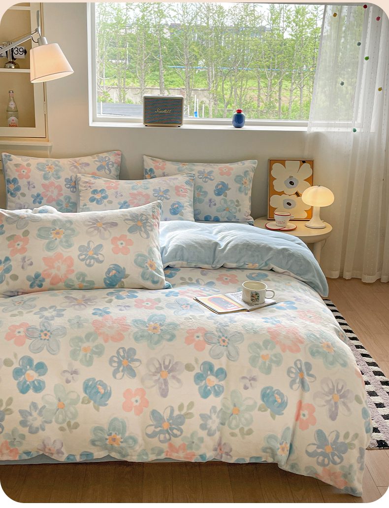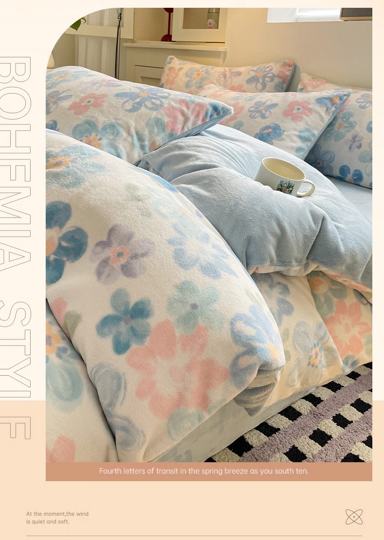 如约 2025新款印花牛奶绒四件套 向阳花开