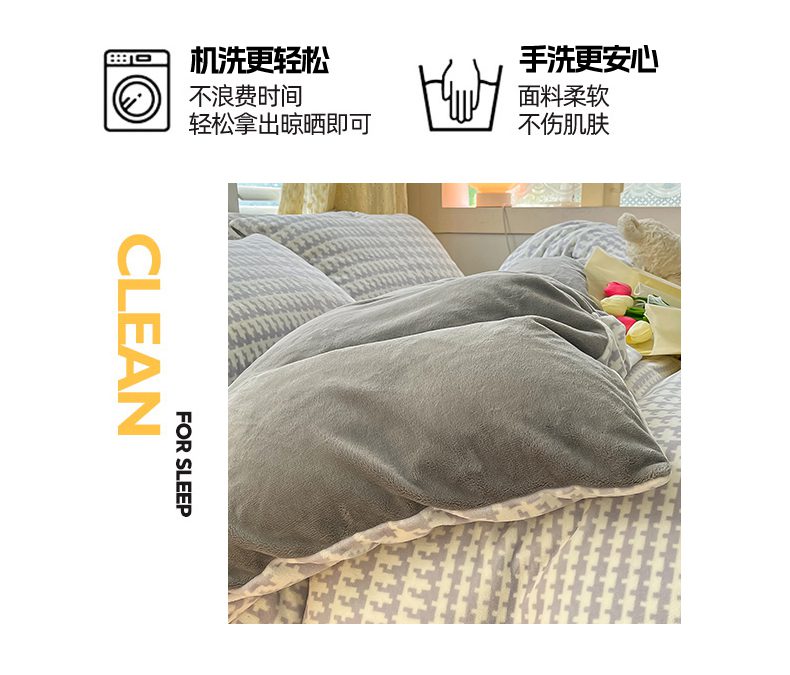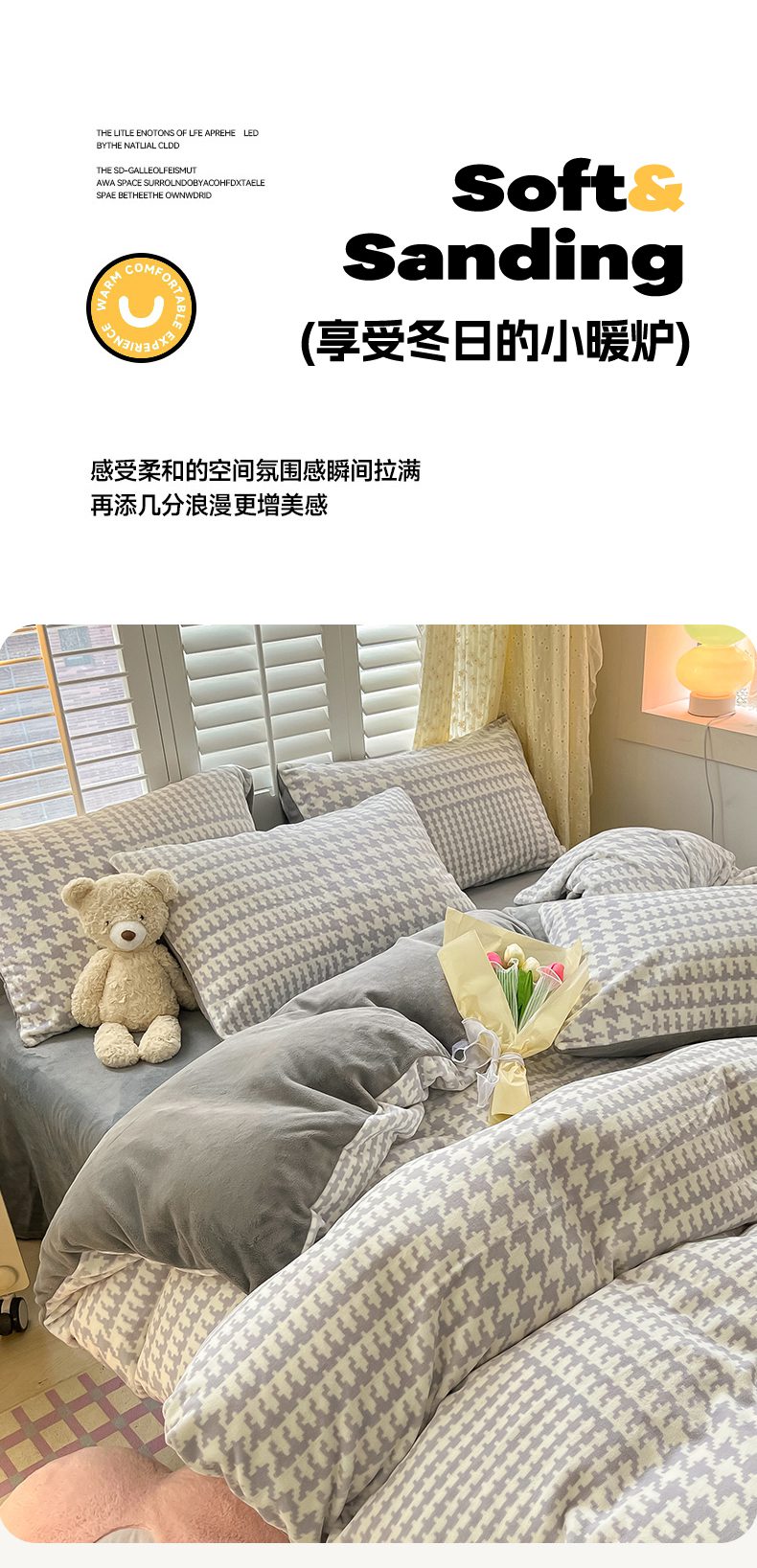 商品名称:如约 2025新款印花牛奶绒四件套 千鸟格-灰