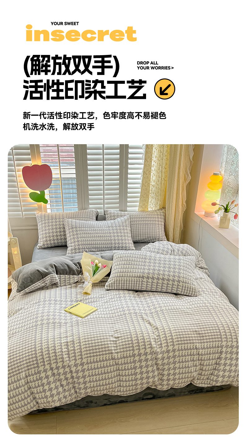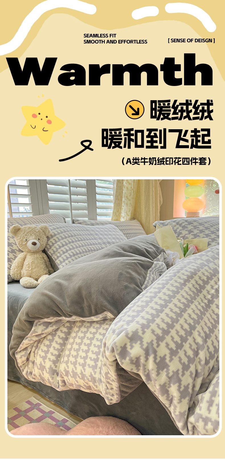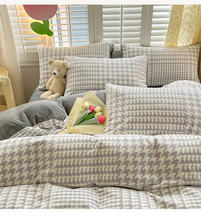 如约 2025新款印花牛奶绒四件套 千鸟格-灰