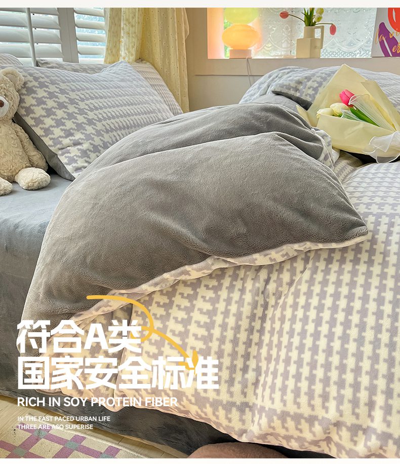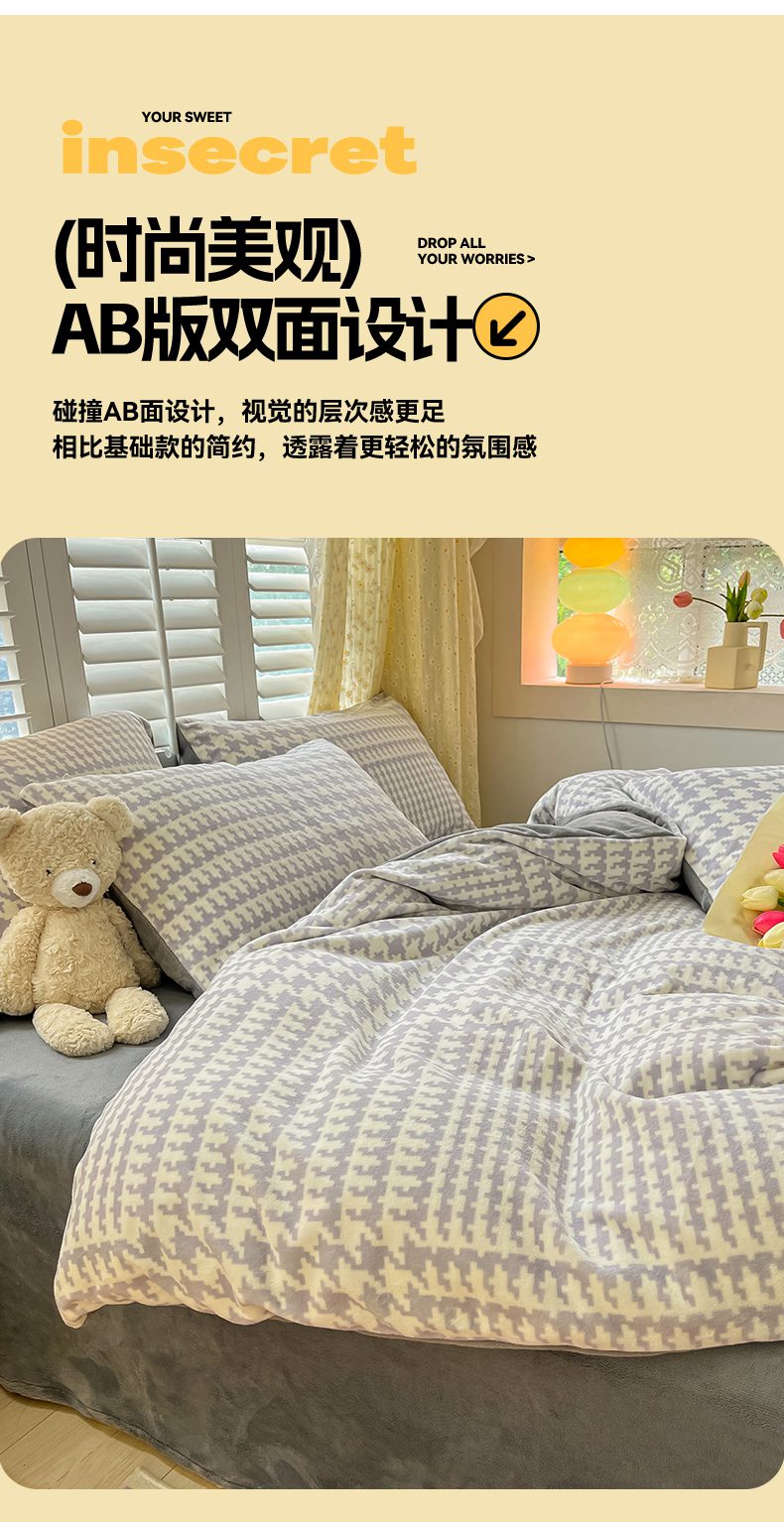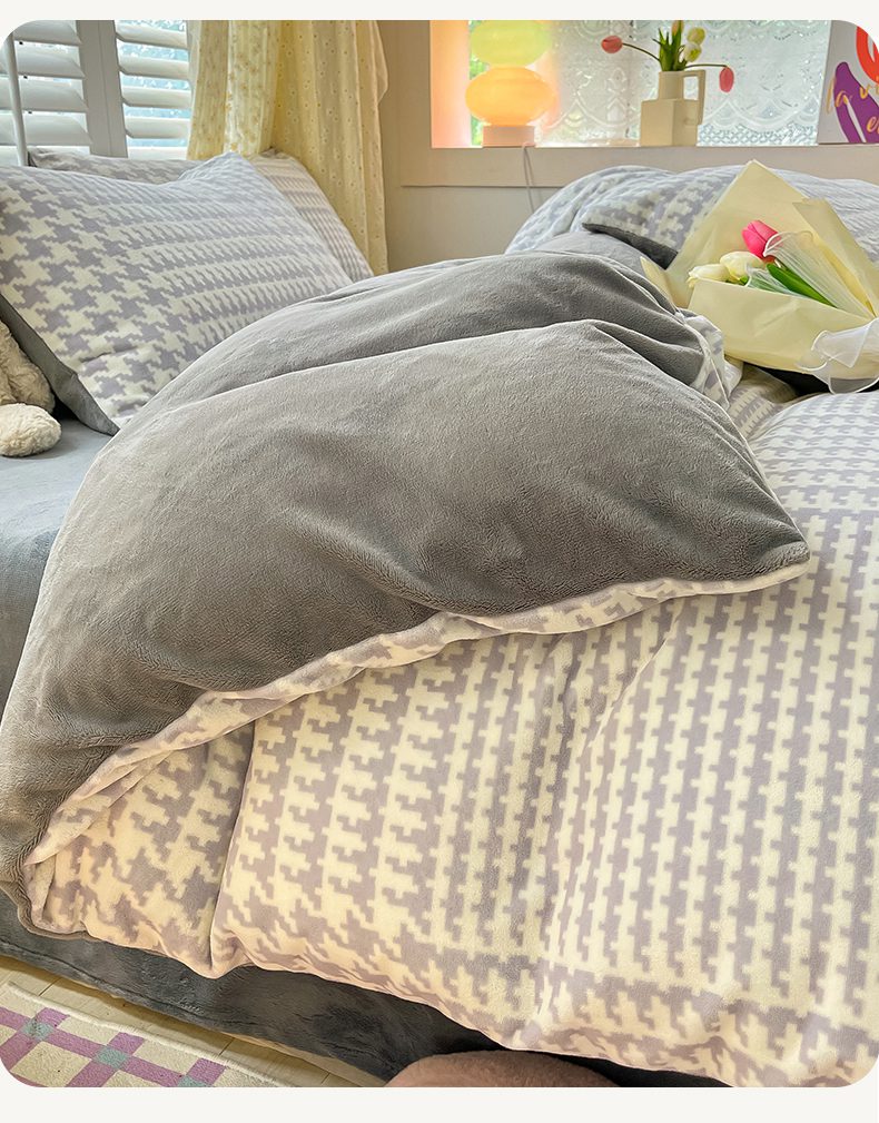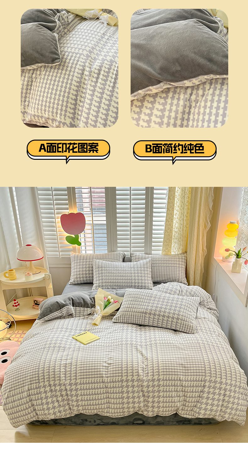 如约 2025新款印花牛奶绒四件套 千鸟格-灰