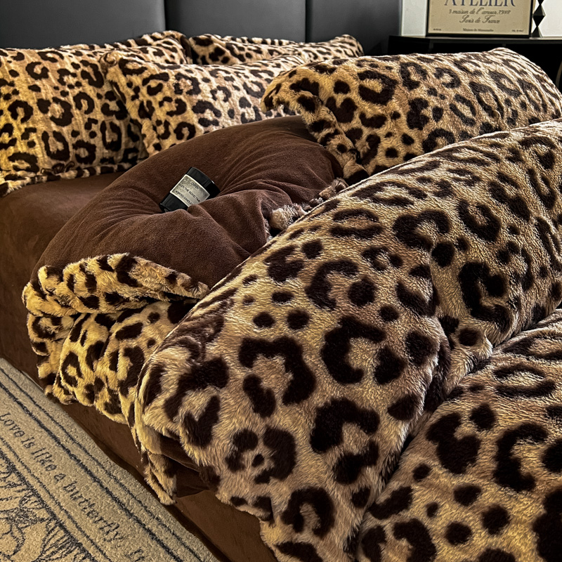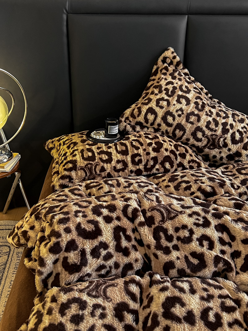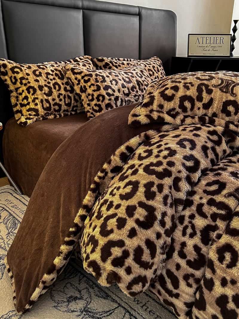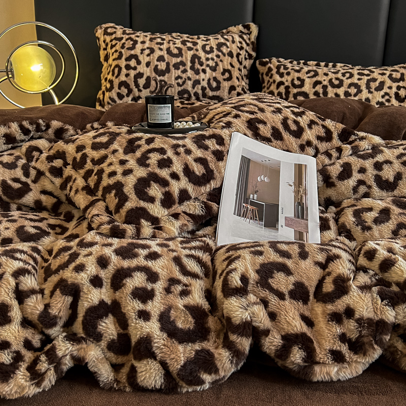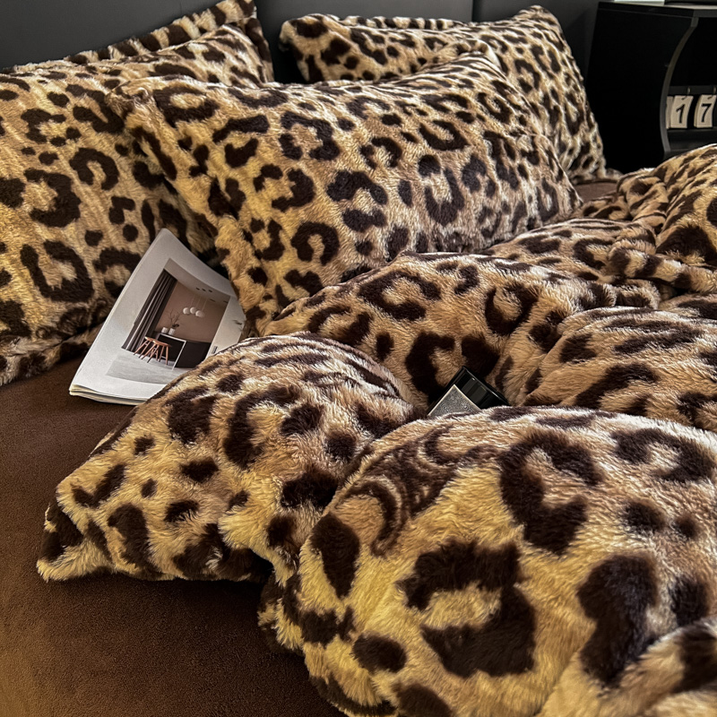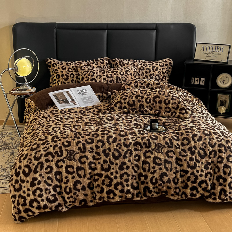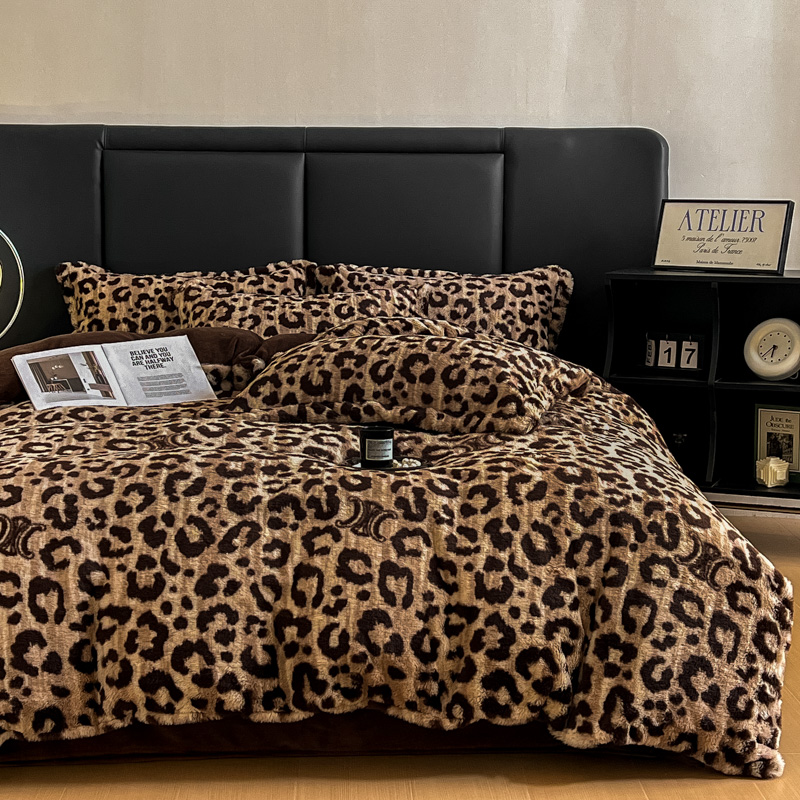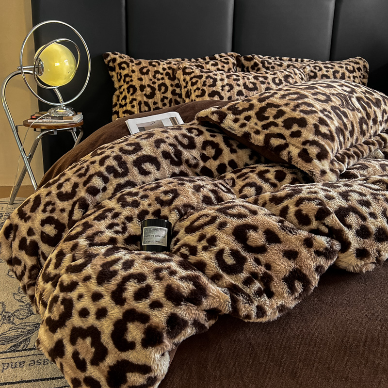 商品名称:一比一家纺 2025新款亲肤舒适兔毛绒兔兔绒牛奶绒四件套 豹纹-咖