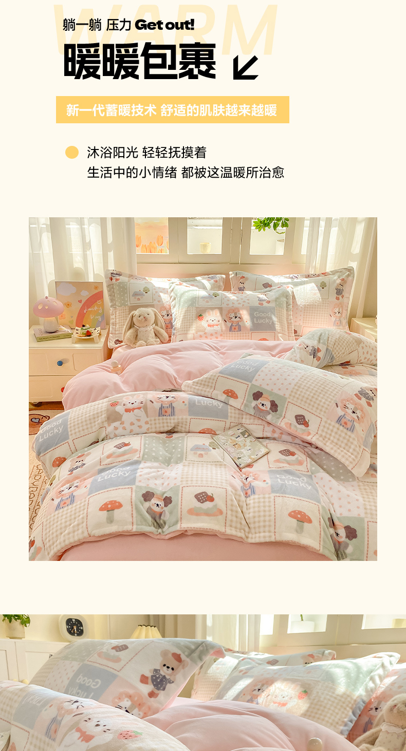 红日子纺织品 2025新款高克重牛奶绒印花四件套 快乐小狗
