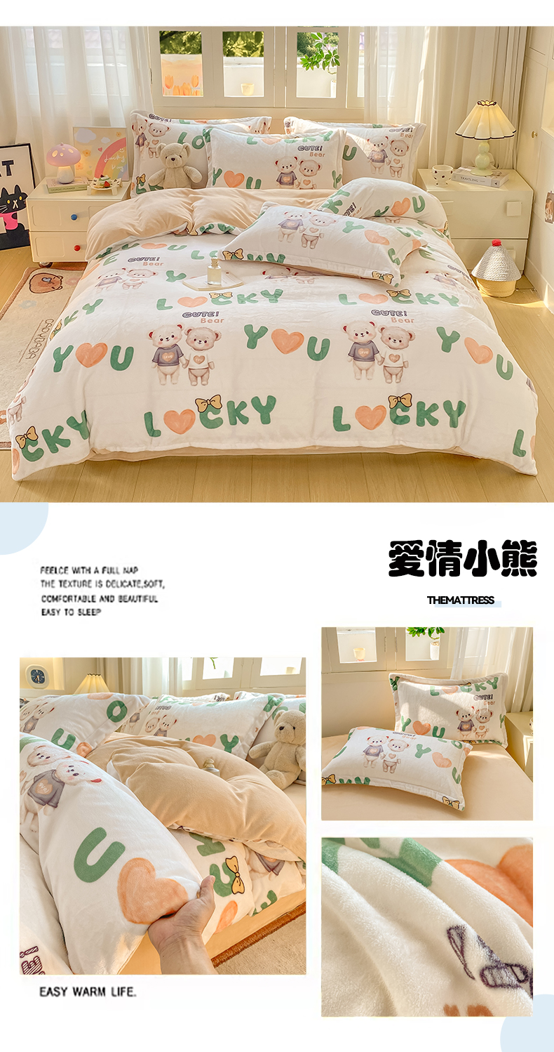 (总)红日子纺织品 2025新款高克重牛奶绒印花四件套,爱情小熊,德尔慧,动物派对,花儿与龙,花海,卡皮巴拉,可爱草莓,缤纷乐园,快乐小狗,拉咕咕,腊肠狗,露营狗,漫天繁星,三小只,幸运樱桃,熊可可,樱桃猫,字母熊