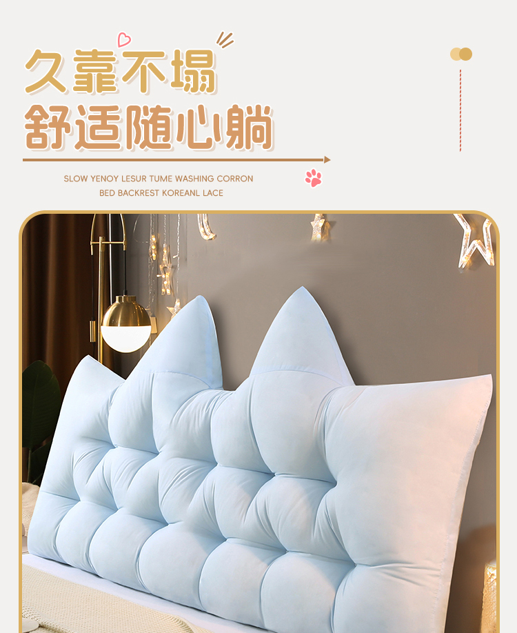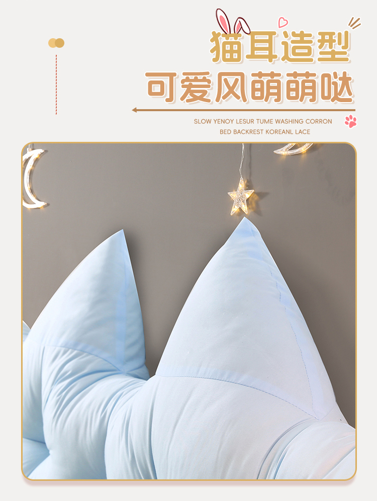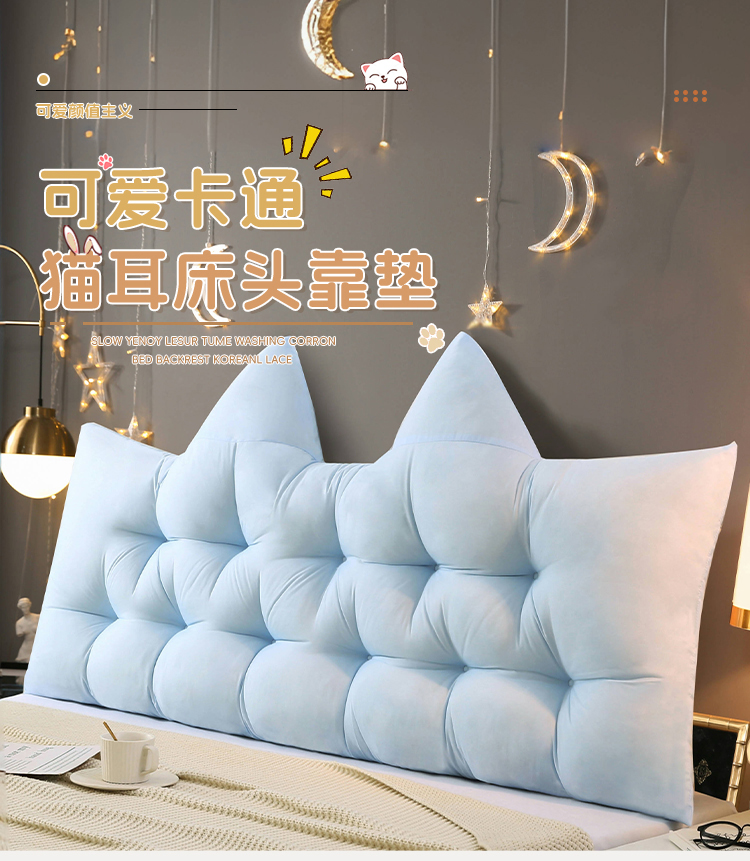 商品名称:碧尔家居 2025新款简约猫长条机械钉扣水洗棉床头靠枕 浅蓝