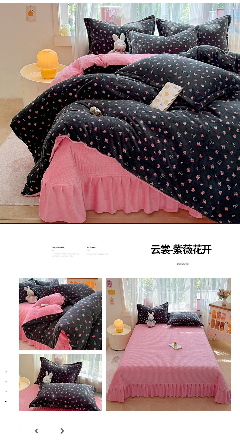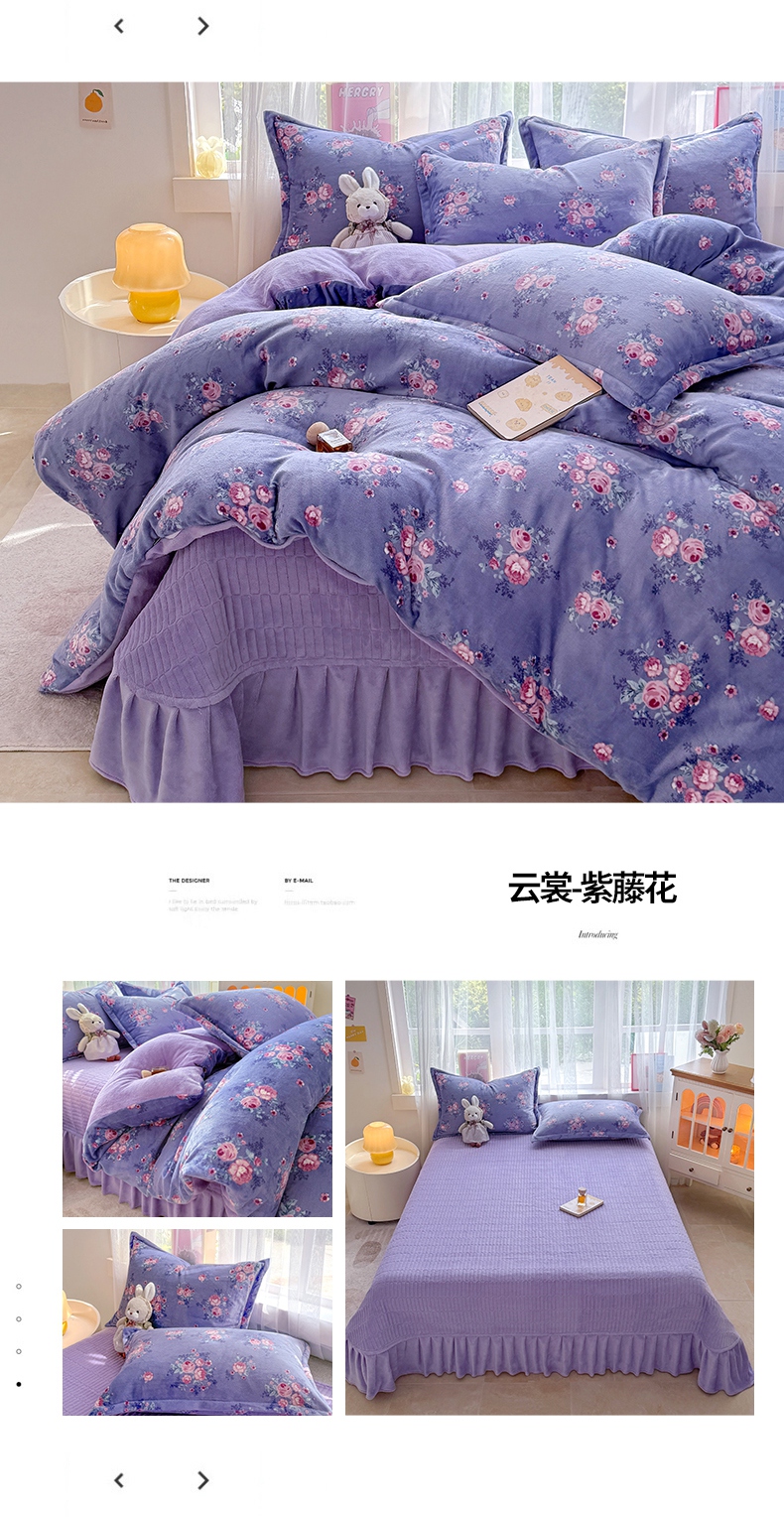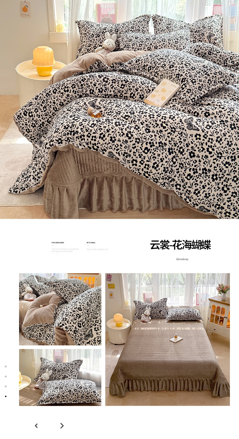 当前位置: 91家纺网 > 商品网购 > 床品套件 > 四件套 > 牛奶绒四件套 > 鸿羽樱家纺《原伊菲晓》 2025新款花仙子系列印花牛奶绒床盖炕垫炕盖四件套-云裳 云裳-花海蝴蝶