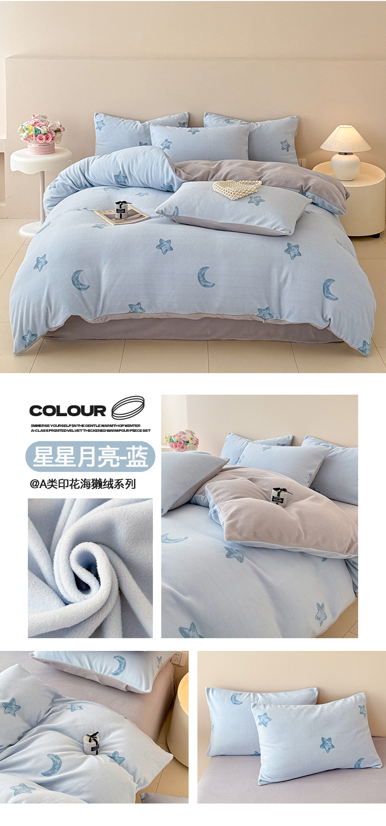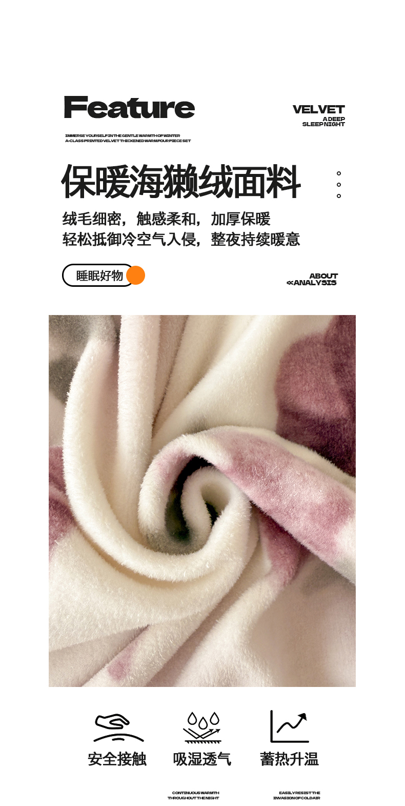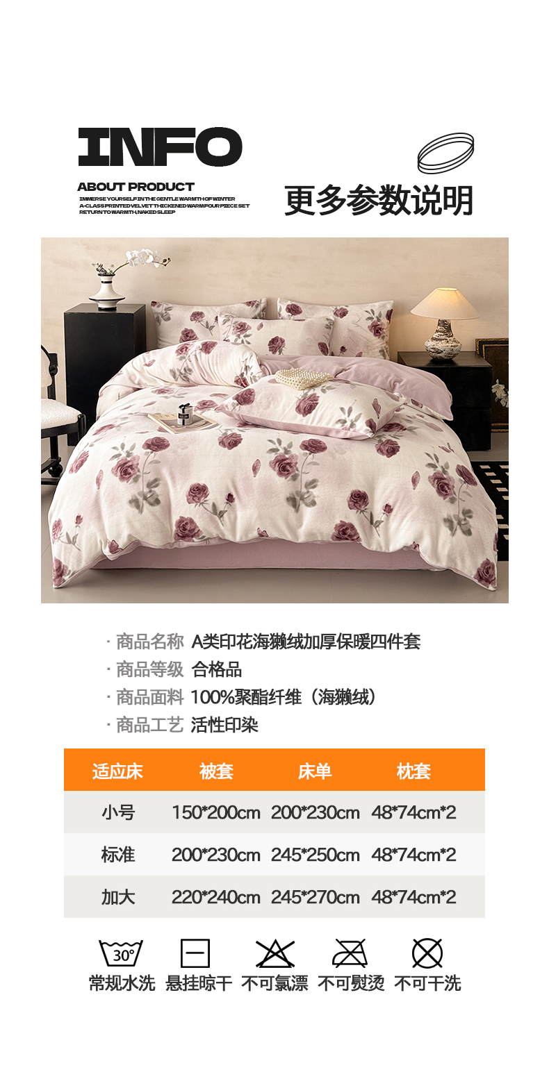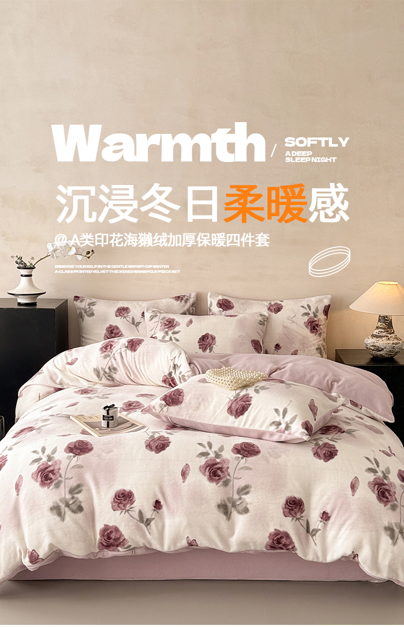 商品名称:懒猫家纺 2025新款印花海獭绒加厚保暖四件套 满园花香