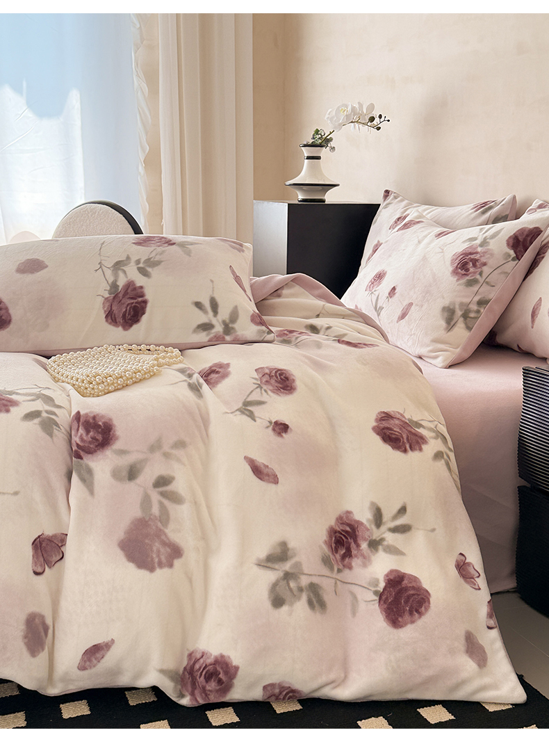 懒猫家纺 2025新款印花海獭绒加厚保暖四件套 满园花香