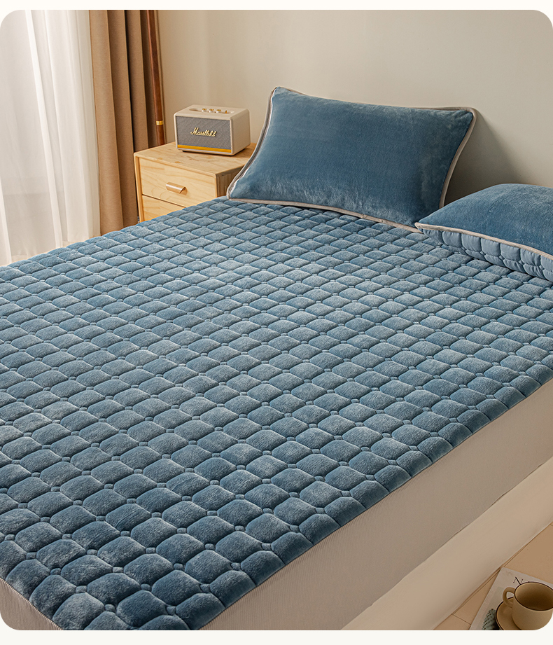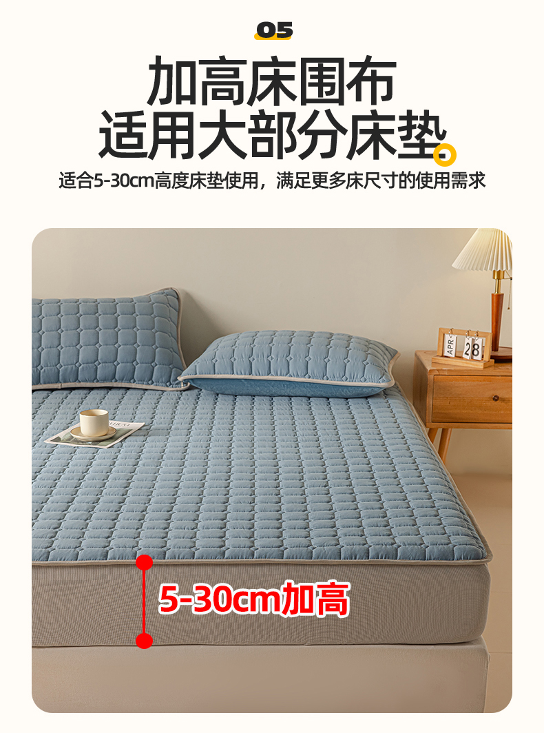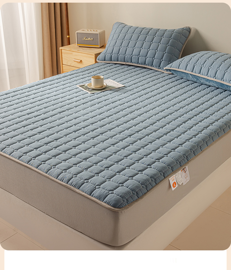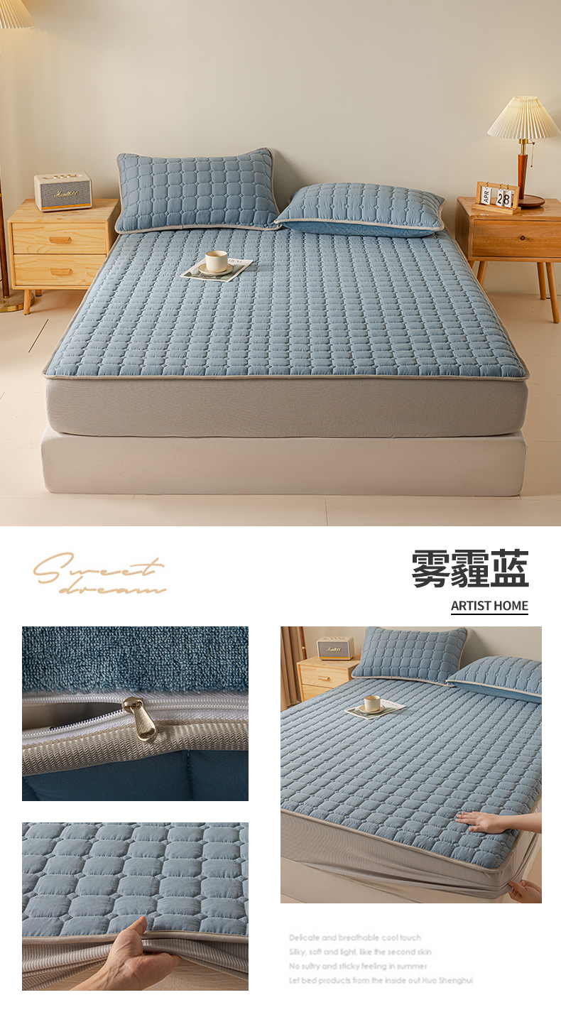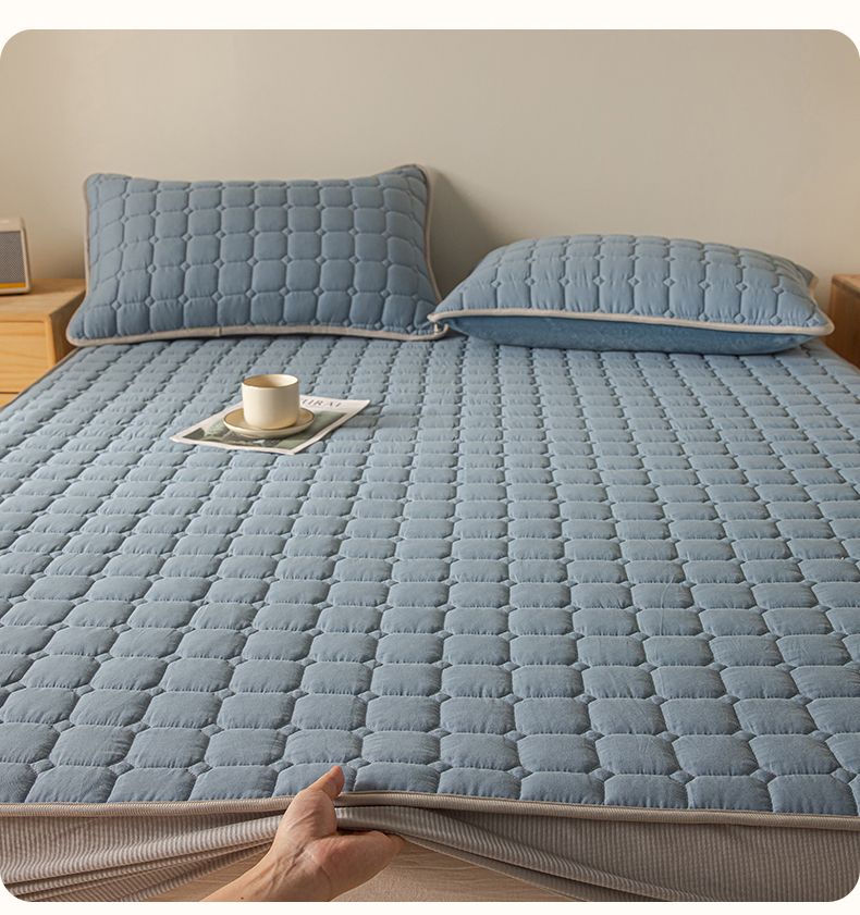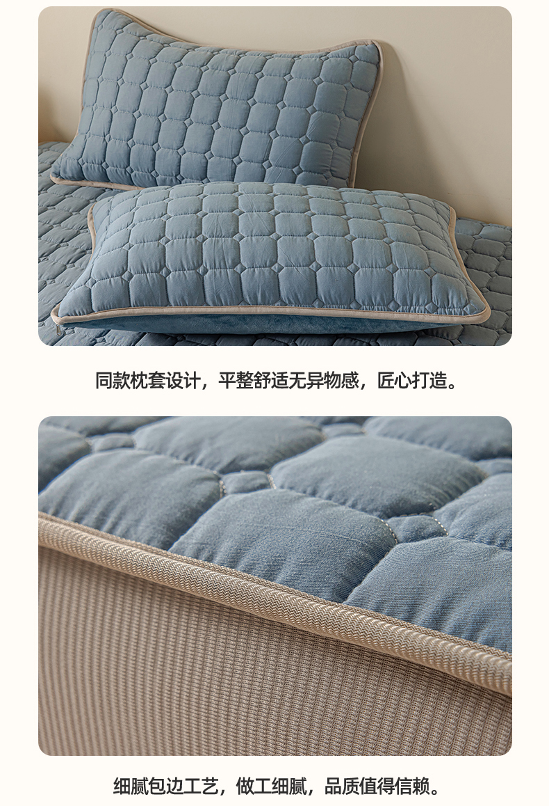 2025新款全棉牛奶绒双面款夹棉床笠 雾霾蓝