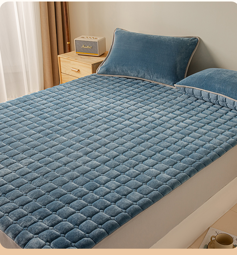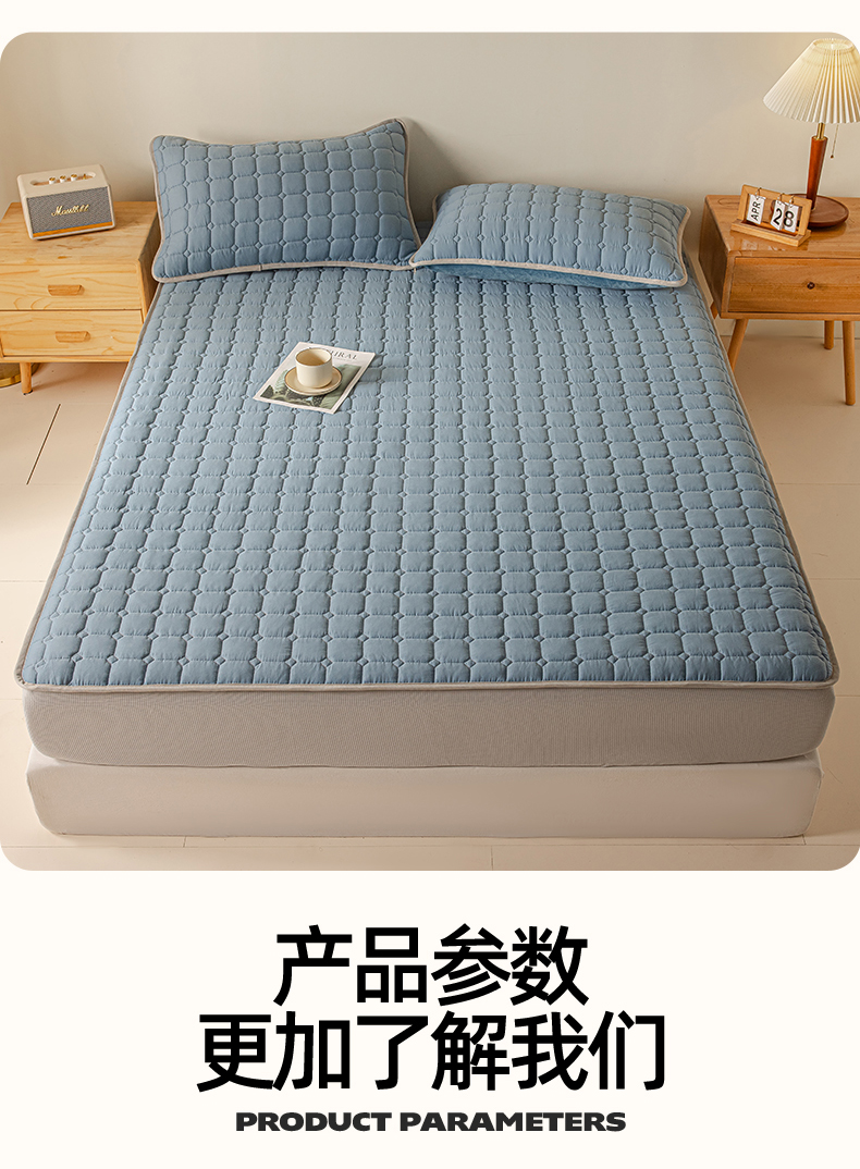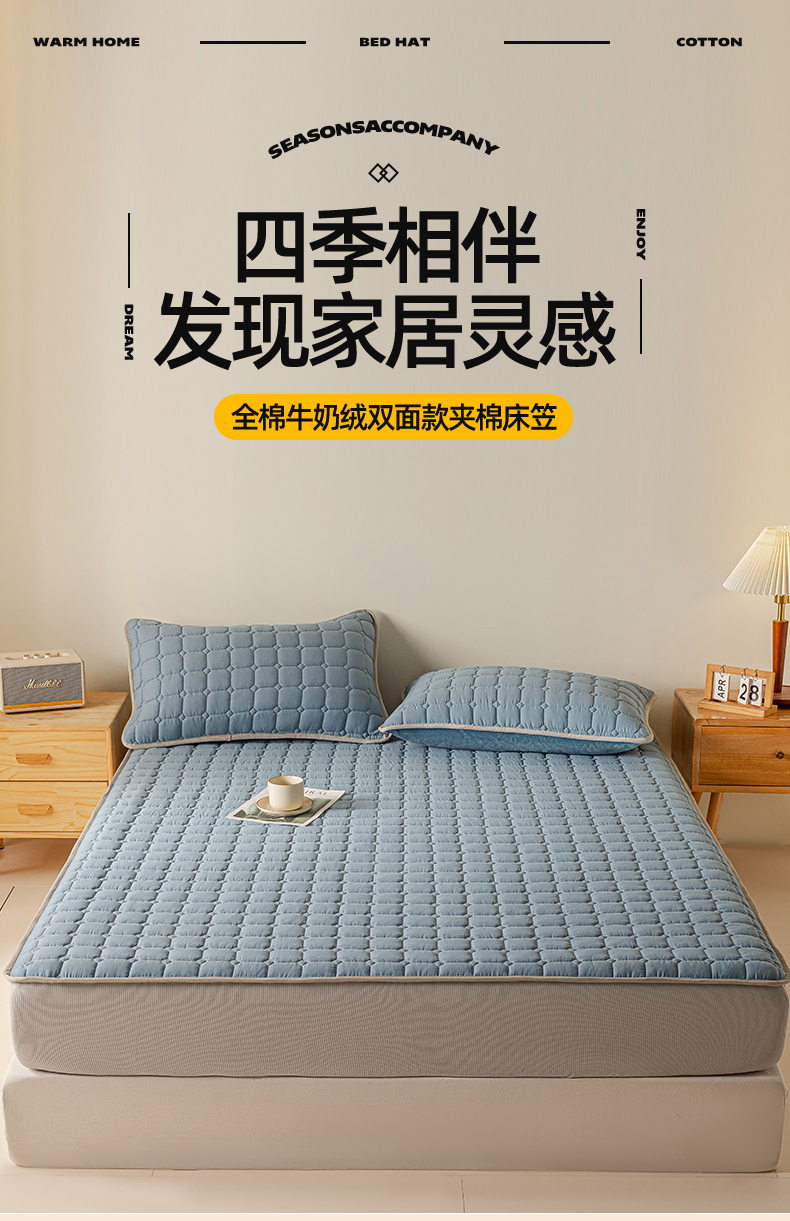 • 91家纺网 家纺一手货源 找家纺 2025新款全棉牛奶绒双面款夹棉床笠 雾霾蓝