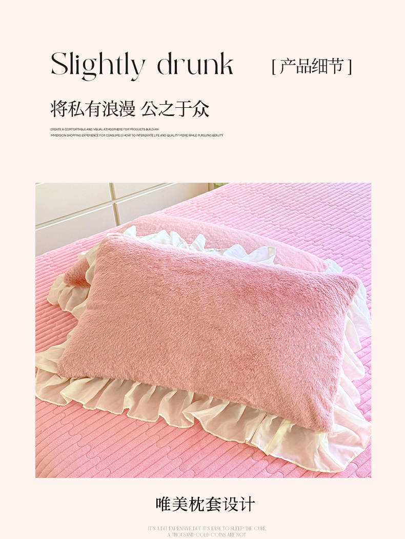 商品名称:唐人居 2025新款高克重兔毛绒花边夹棉床盖四件套-满满爱 满满爱-奶白