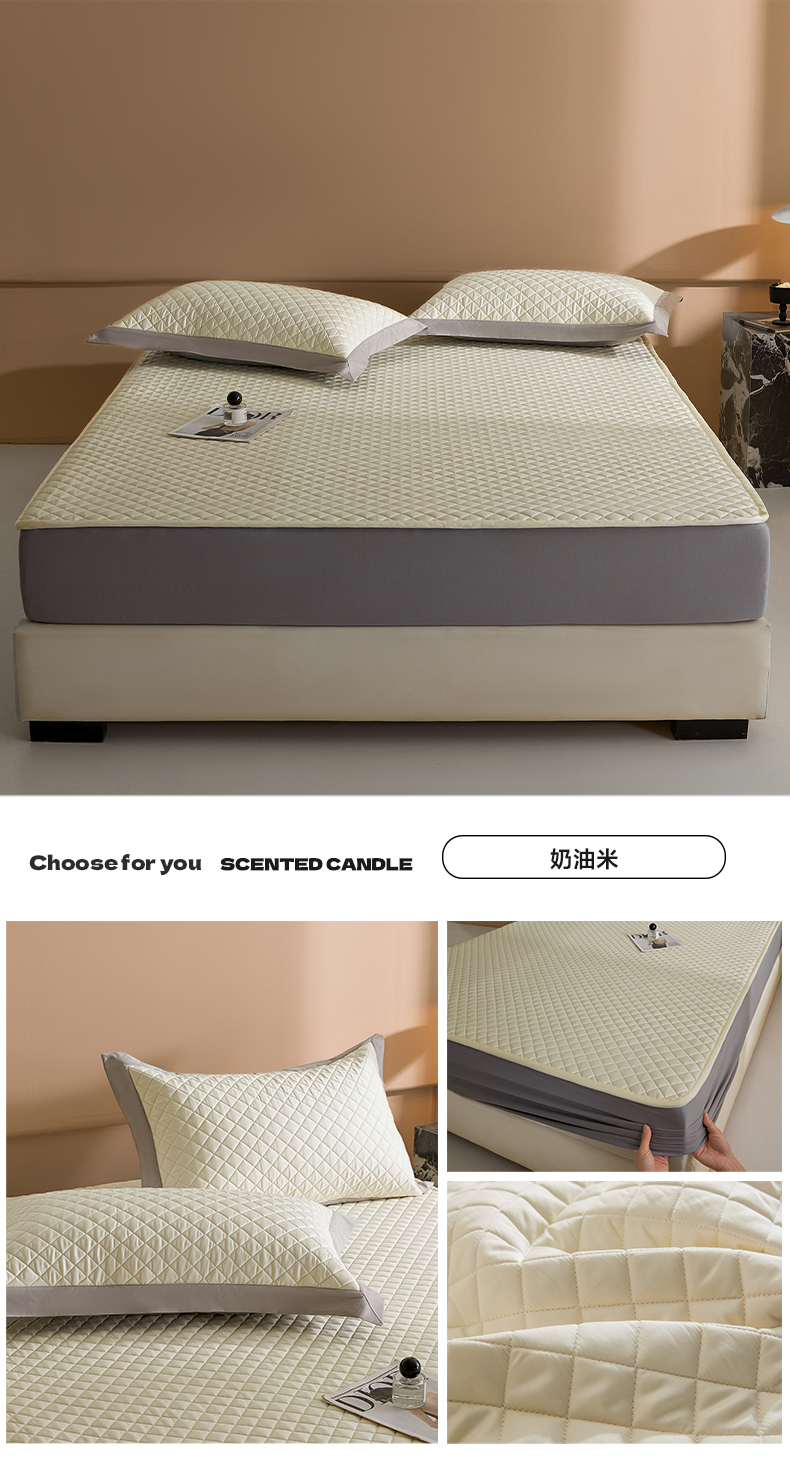 商品名称:由有家居 2025新品60S全棉长绒棉绗缝夹棉大豆纤维床垫床褥平铺款床笠款三件套 床笠-奶油米