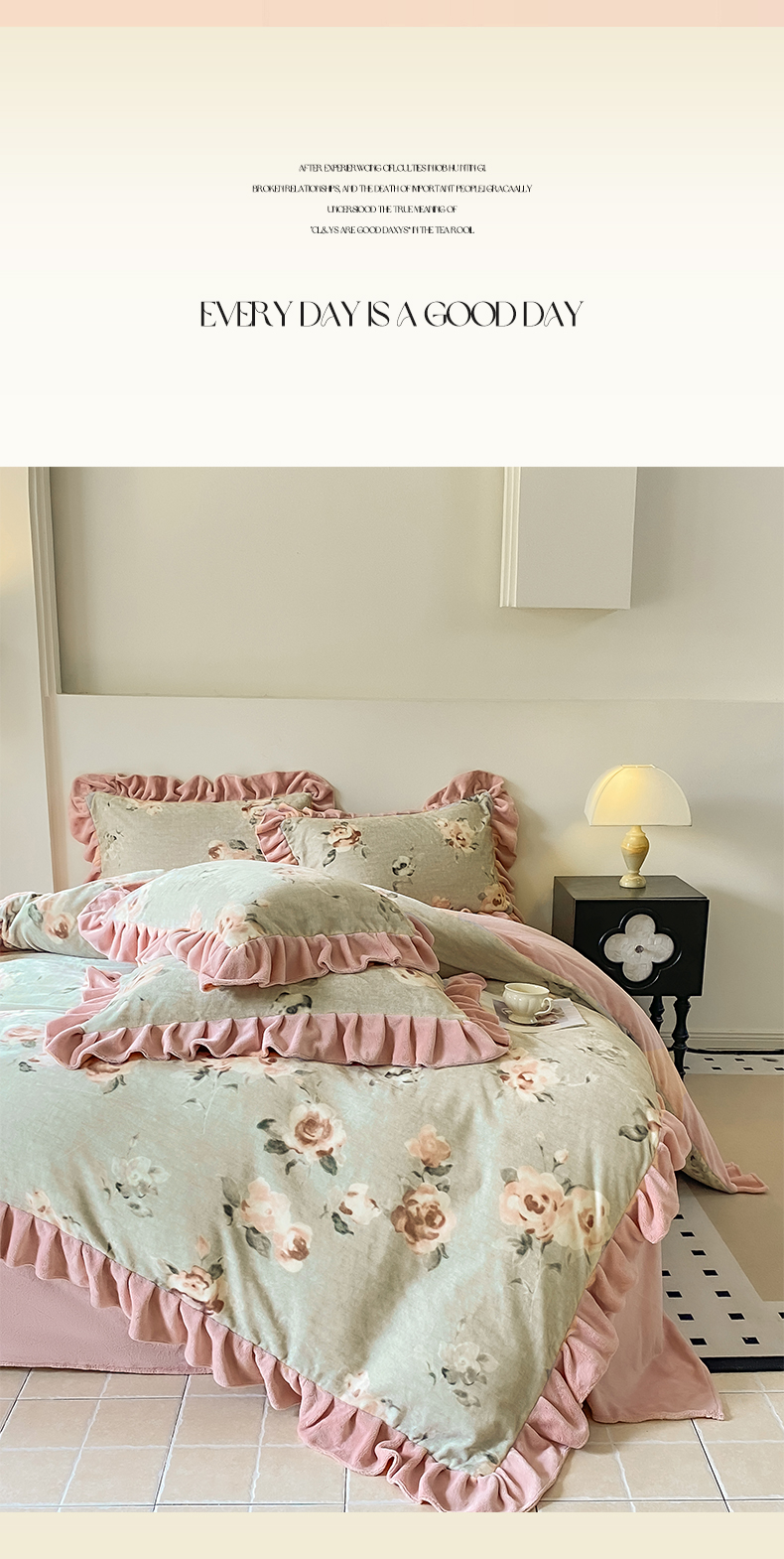 当前位置: 91家纺网 > 商品网购 > 床品套件 > 四件套 > 牛奶绒四件套 > 锦彩家居 2025新款高克重牛奶绒花边款四件套-花屿愿 木棉花 绿