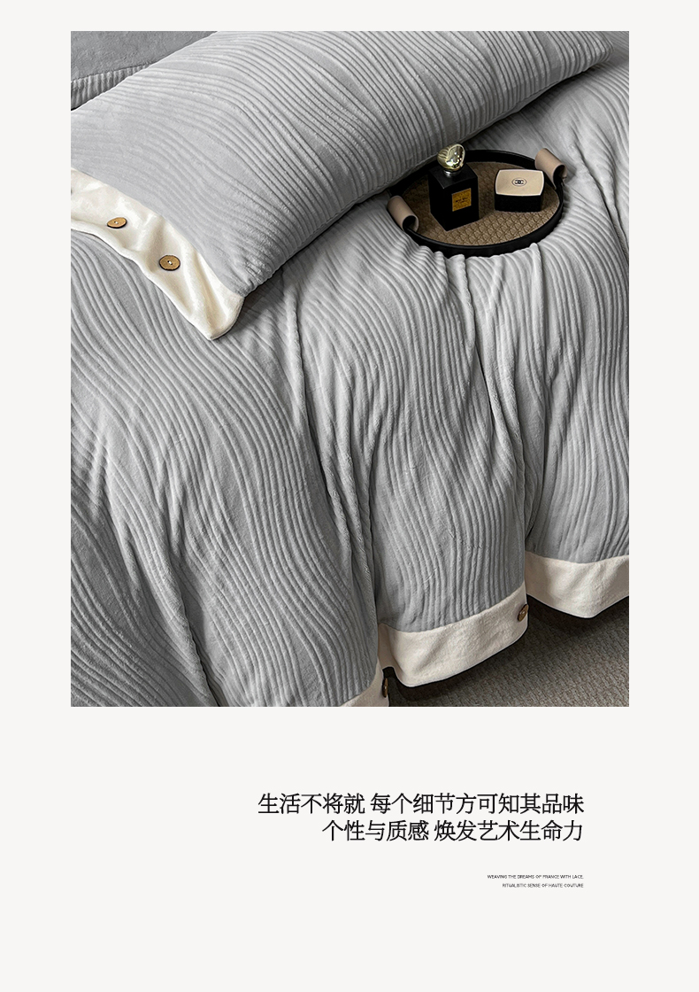 当前位置: 91家纺网 > 商品网购 > 床品套件 > 四件套 > 牛奶绒四件套 > 锦彩家居 2025新款亲肤舒适高克重牛奶绒纽扣款四件套-简爱 纽扣款-岛屿灰