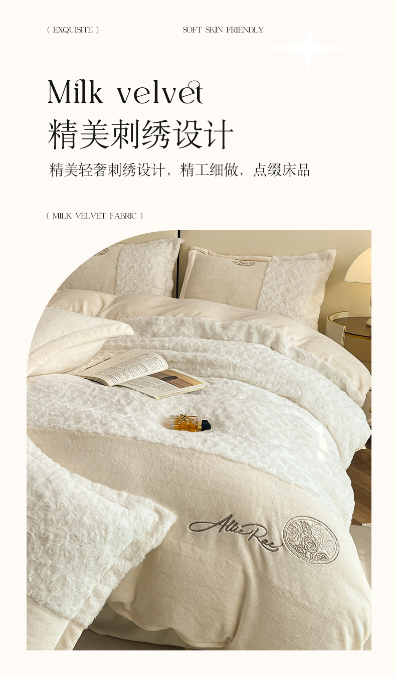 商品名称:(总)梓之赫 2025新款全消光牛奶绒四件套-浪漫玫瑰