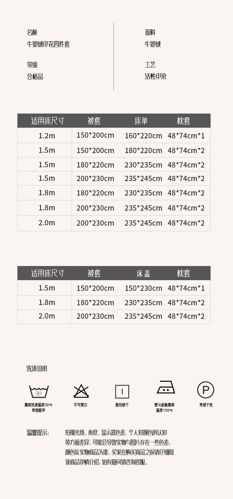 【床盖款】1.8四件套-被套200x230 | ¥150.00 |