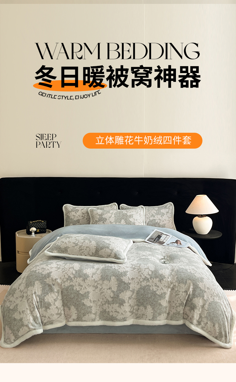 (总)极简 2024新款兔毛宽包边立体雕好牛奶绒四件套-米莱,米莱-冰蓝,米莱-草绿,米莱-豆蔻紫,米莱-湖蓝,米莱-米月白,米莱-藕粉,米莱-鸭蛋灰