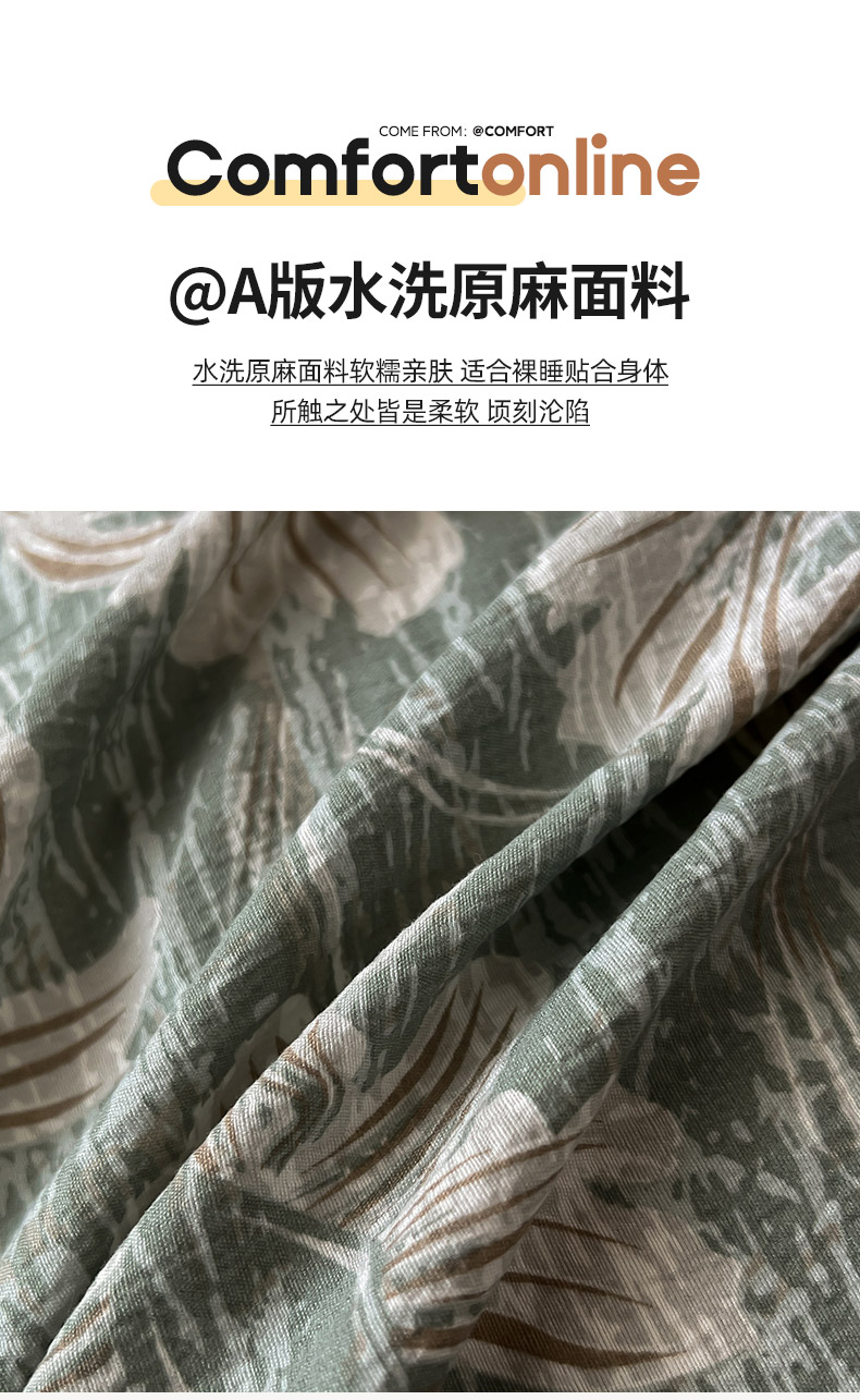 (总)吾诺 水洗原麻拼牛奶绒四件套 纽扣款四件套-原麻系列,晓梦,叠影,羽叶,叶藤,绍华,芳菲,花梦,暗香