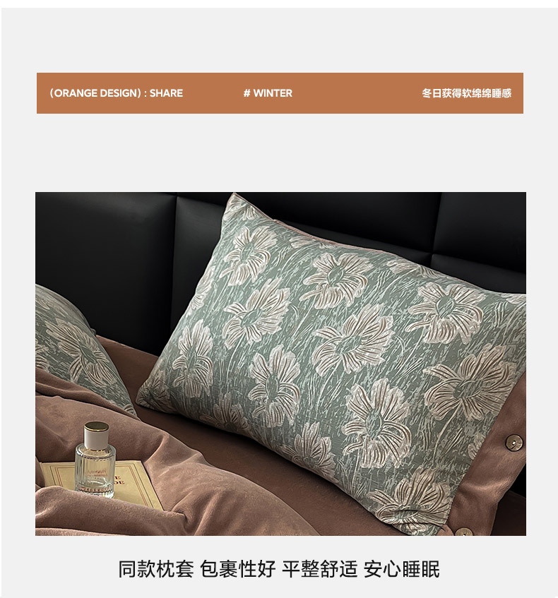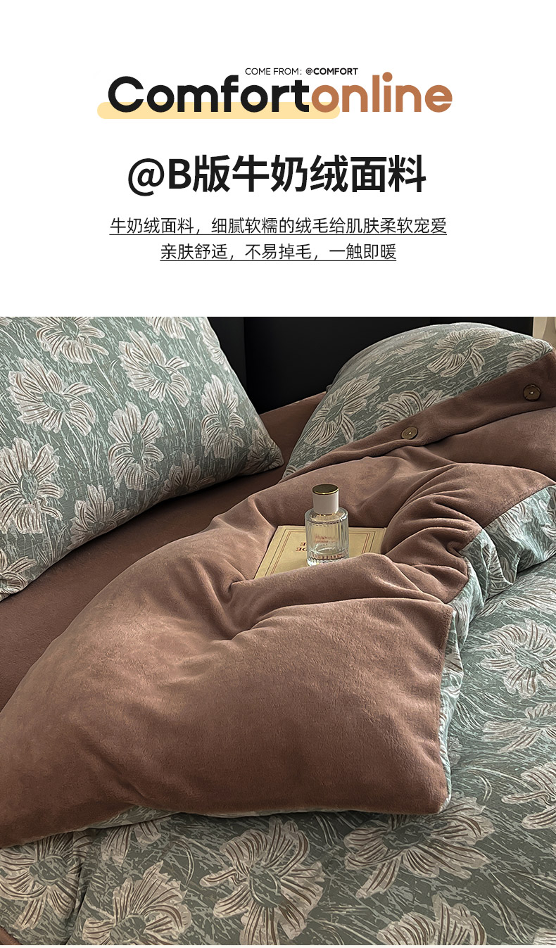 (总)吾诺 兔毛边230克雕花牛奶绒四件套 - 秋意系列,朝花,紫叶,花海,轻羽,飞花,秋意,冬梅,华美,春野
