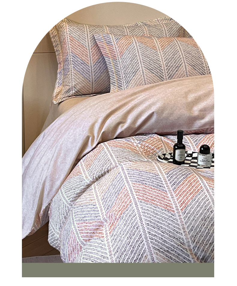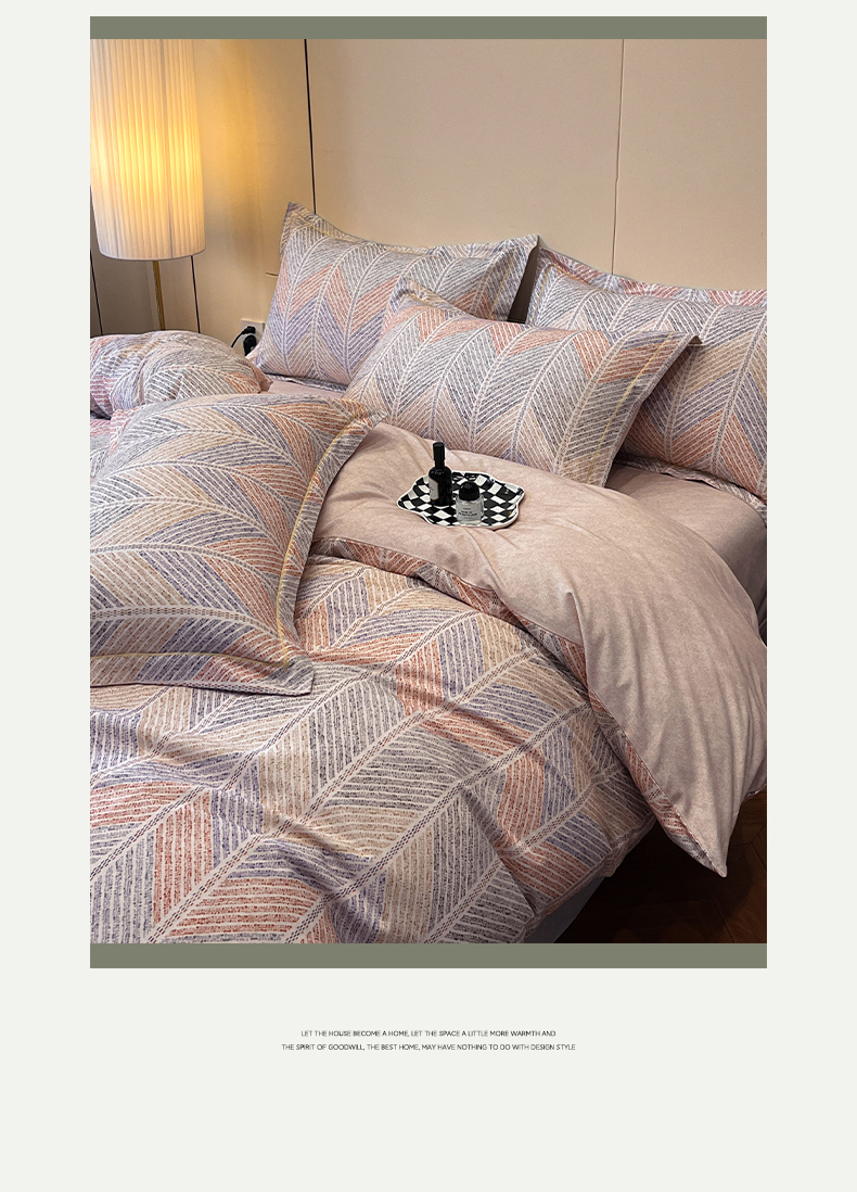 简如 2025新款全棉磨毛印花四件套(有买家秀提供) 叶影-粉,叶影-粉