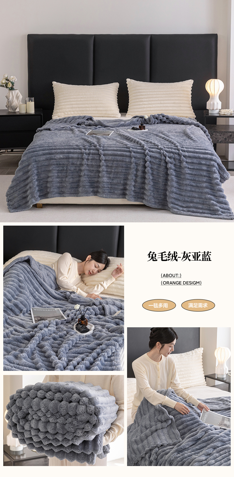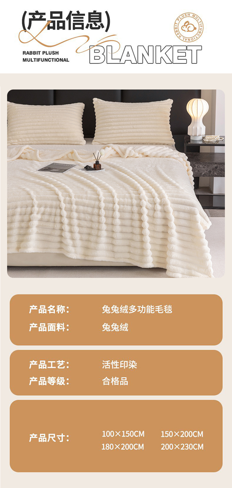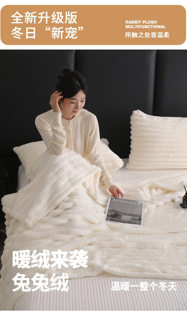 商品名称:(总)楠沐家纺 2025新款高克重大抽条毛毯仿兔毛绒法兰绒毯跨境外贸多功能毯