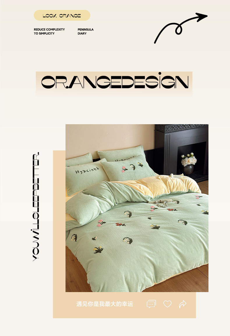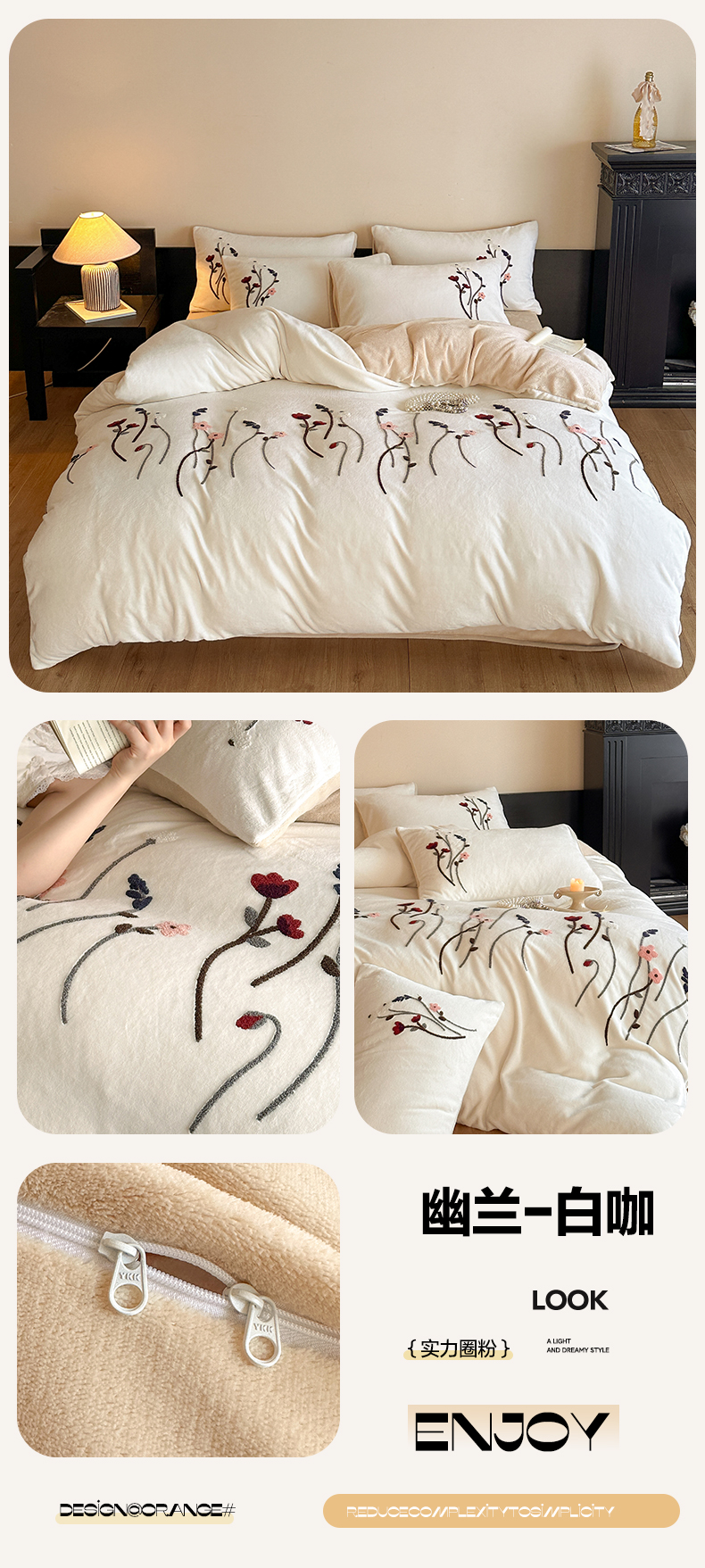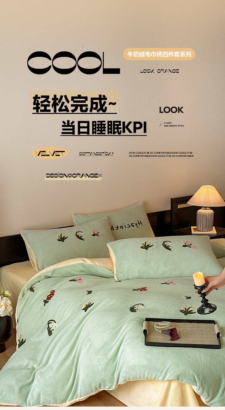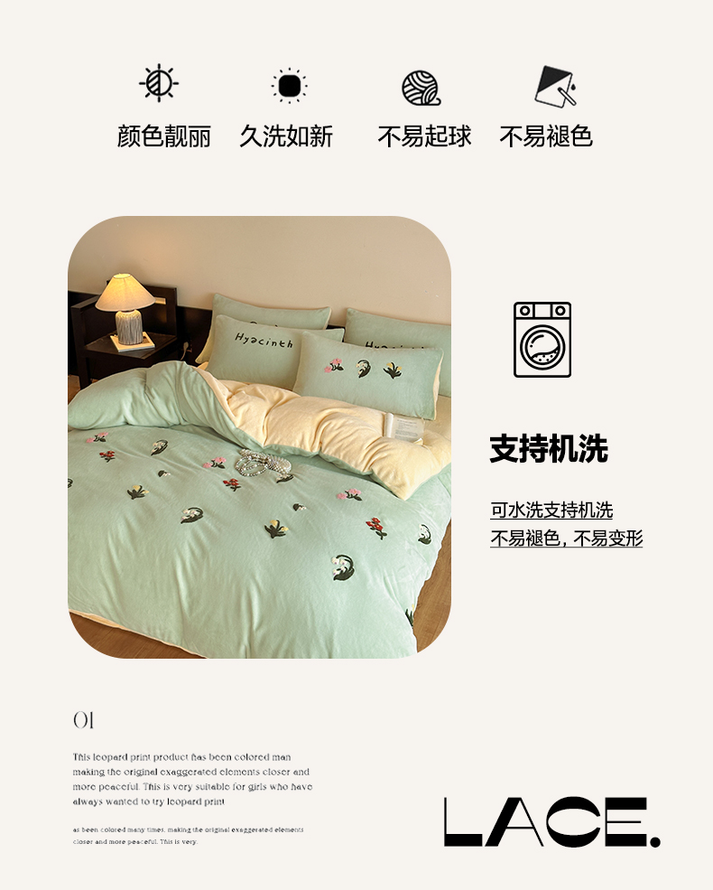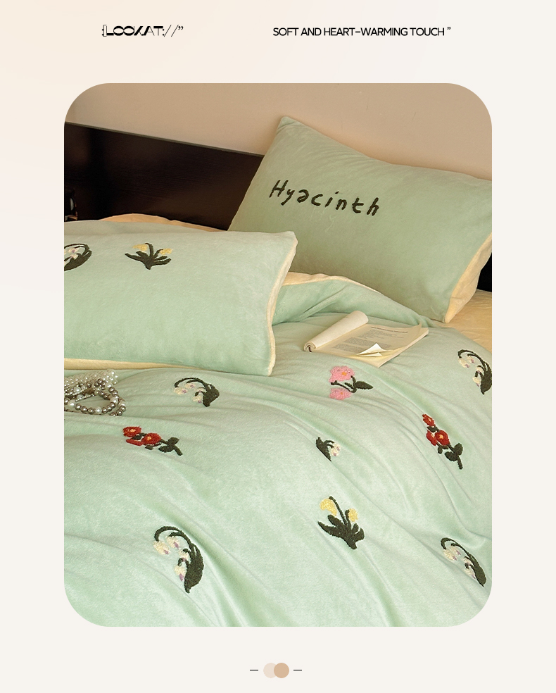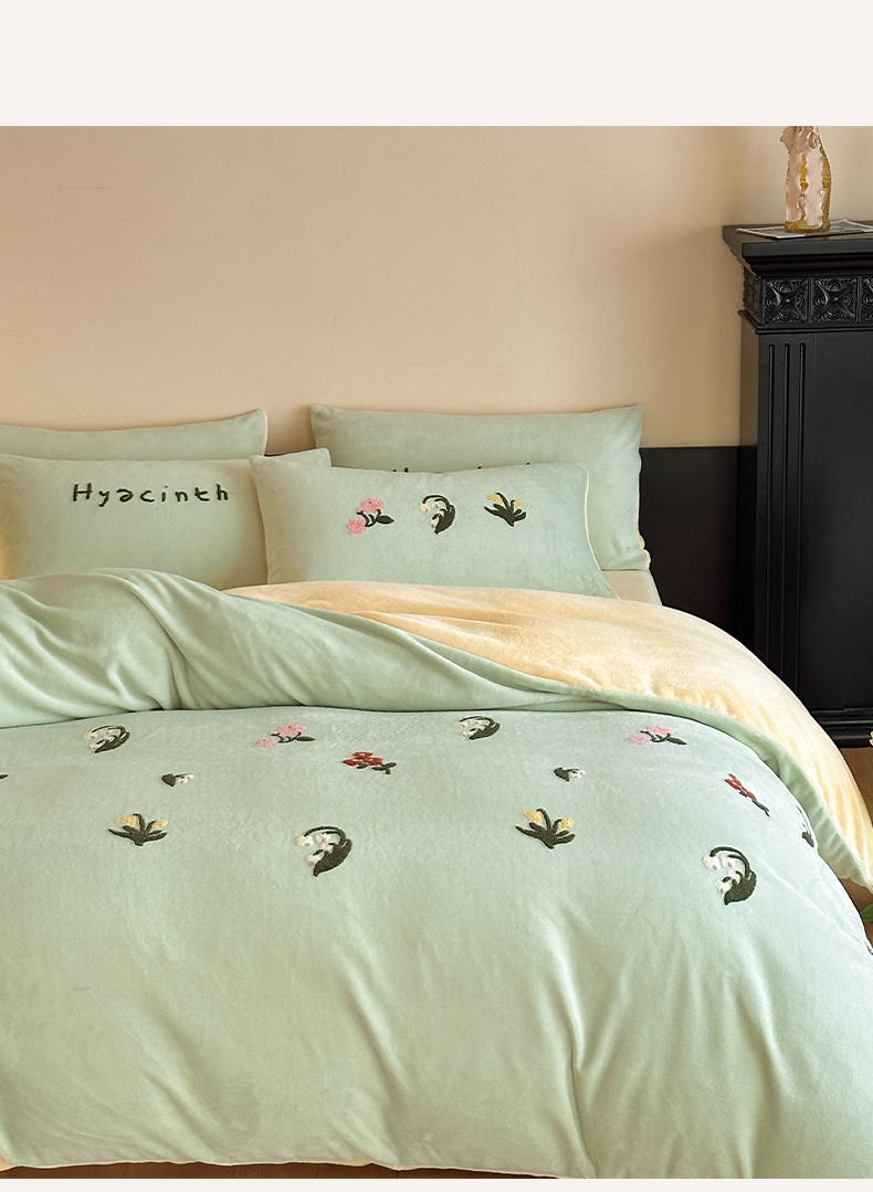 如一 2025新款田园风毛巾绣牛奶绒四件套 铃兰-绿黄