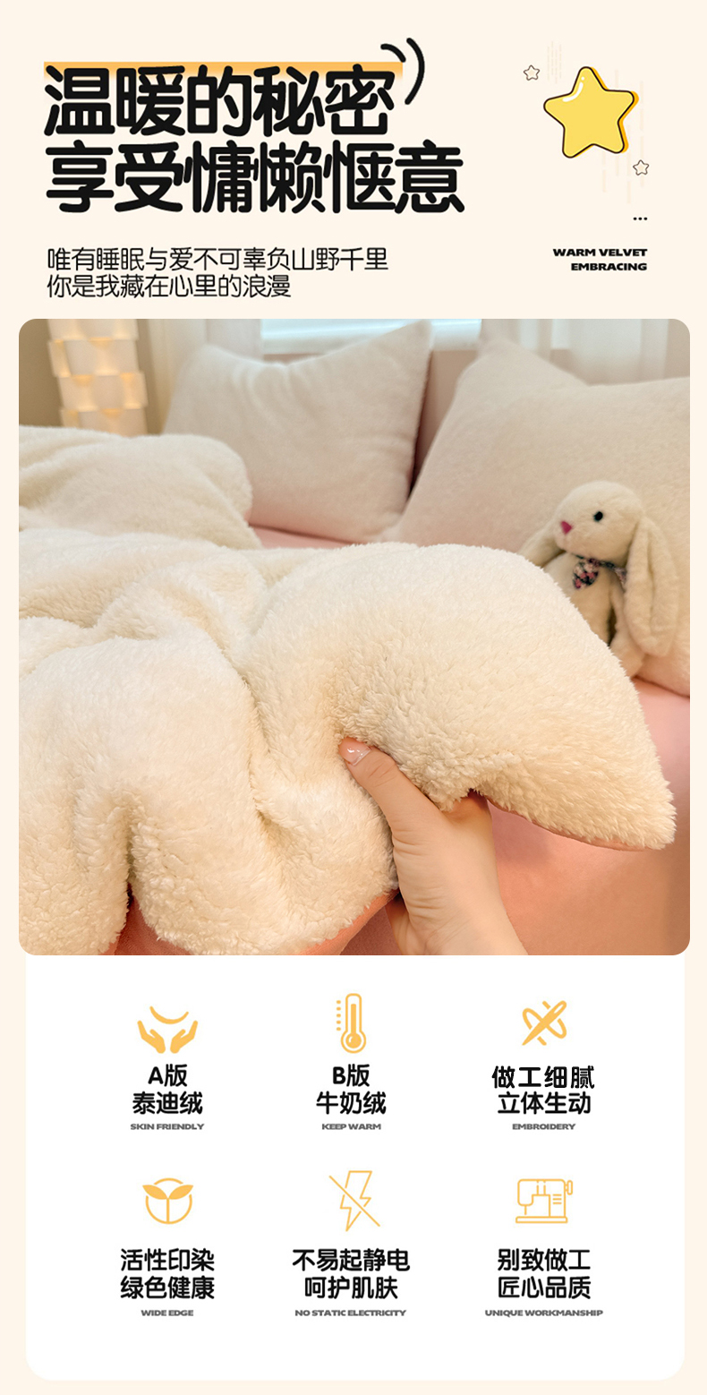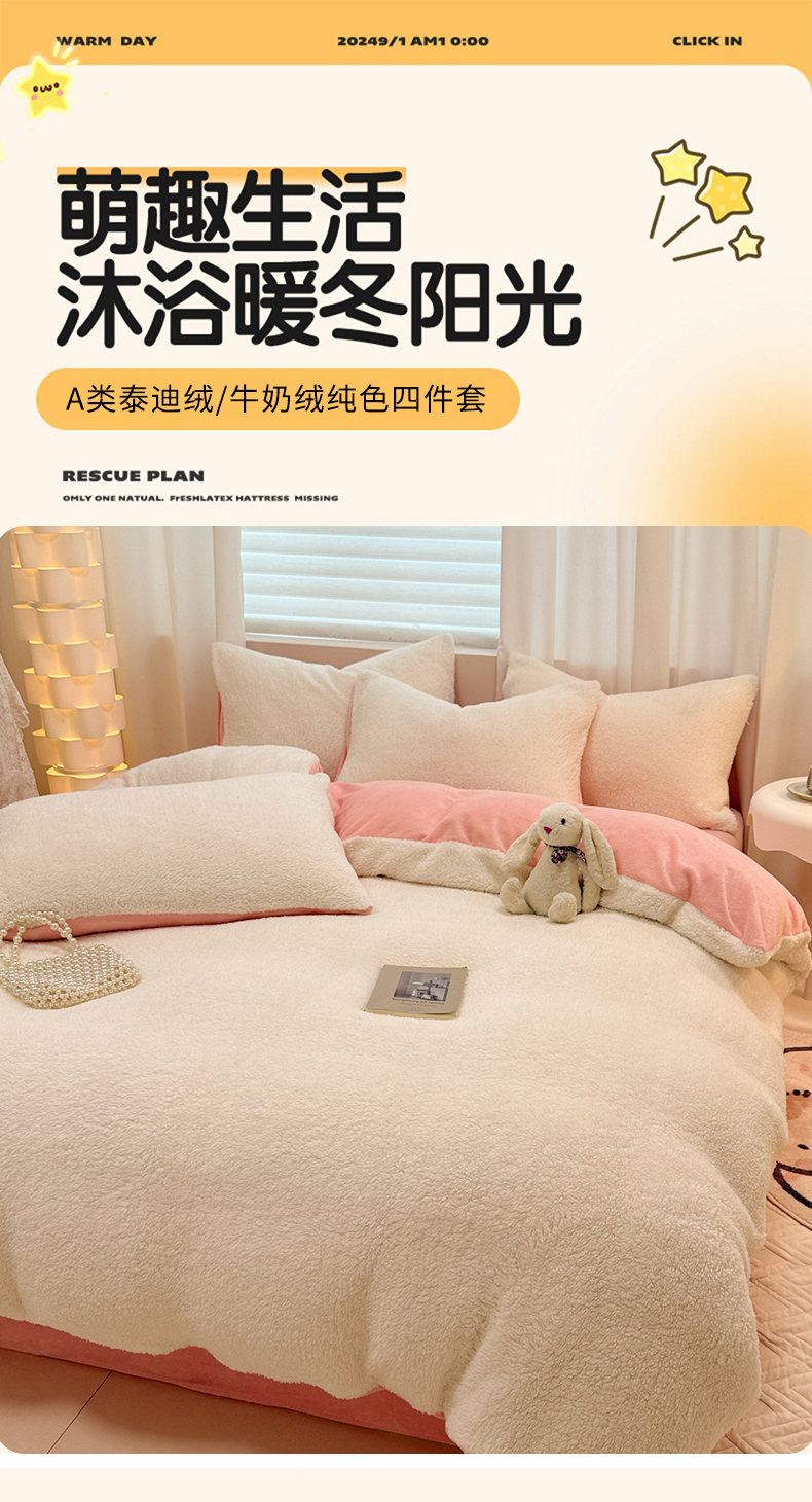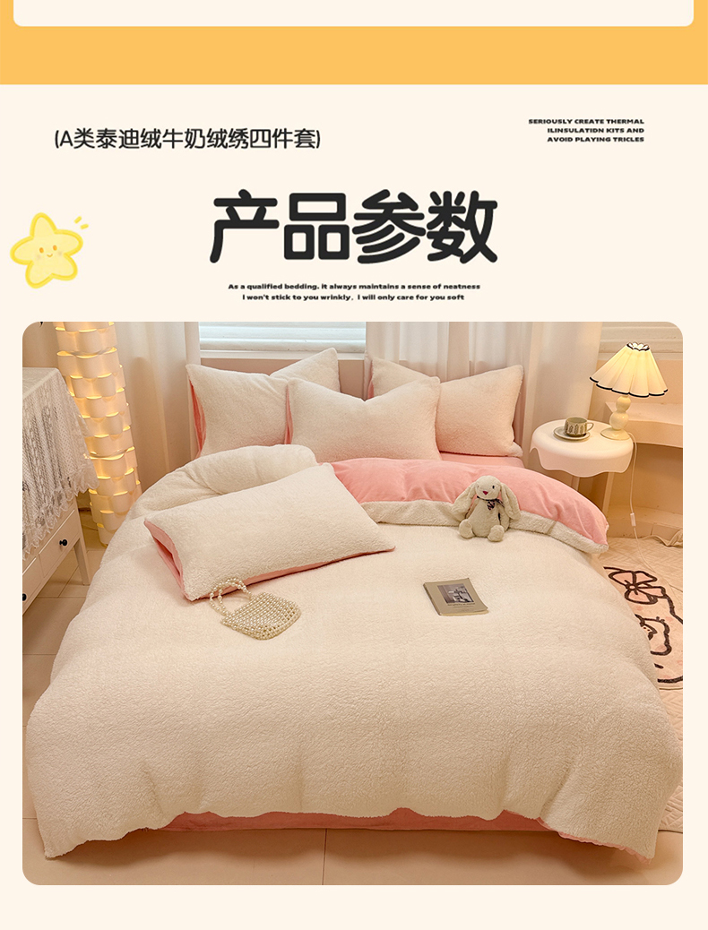 当前位置: 91家纺网 > 商品网购 > 床品套件 > 四件套 > 牛奶绒四件套 > 眠博士 2025新款A类泰迪绒牛奶绒纯色四件套 泰迪绒-安妮白粉