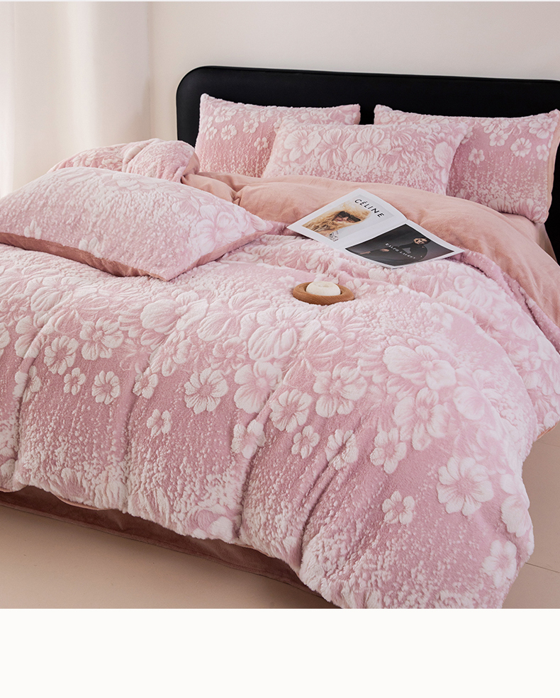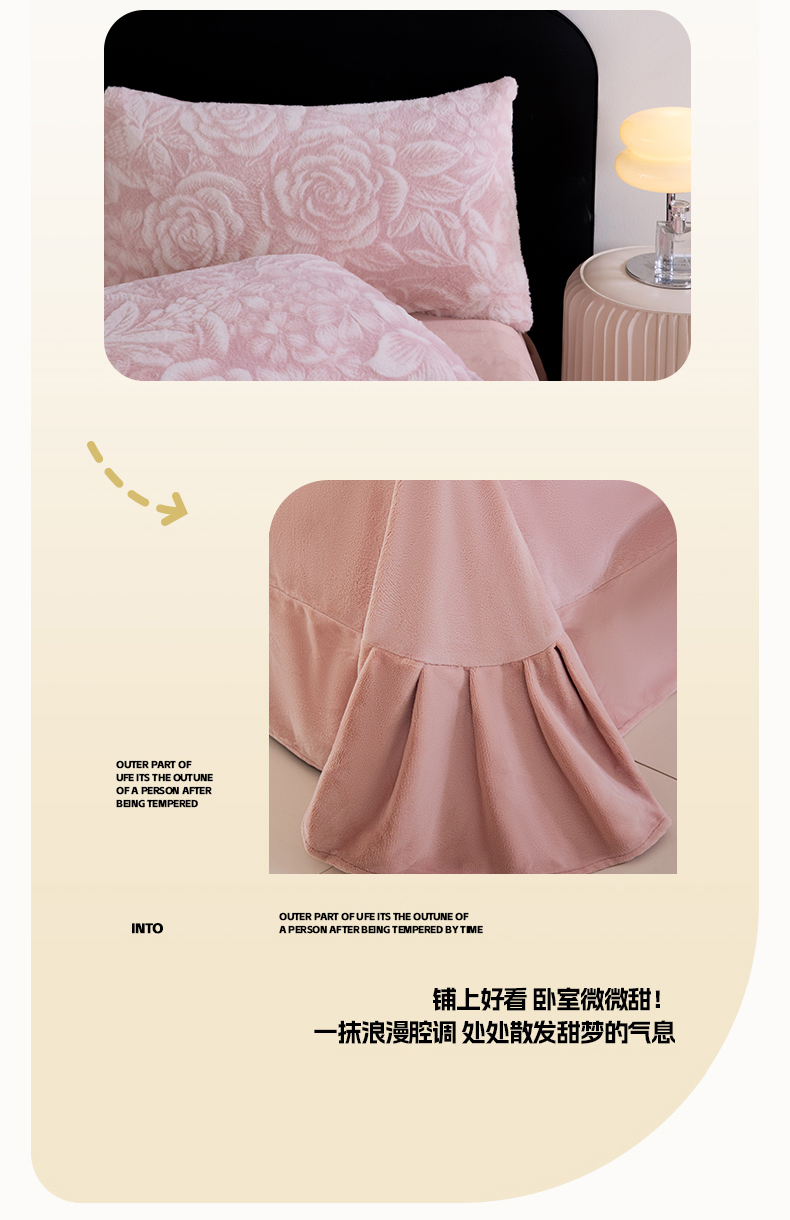 商品名称:诺梵家纺 2025新款立体兔毛烂花四件套 伊莎-粉
