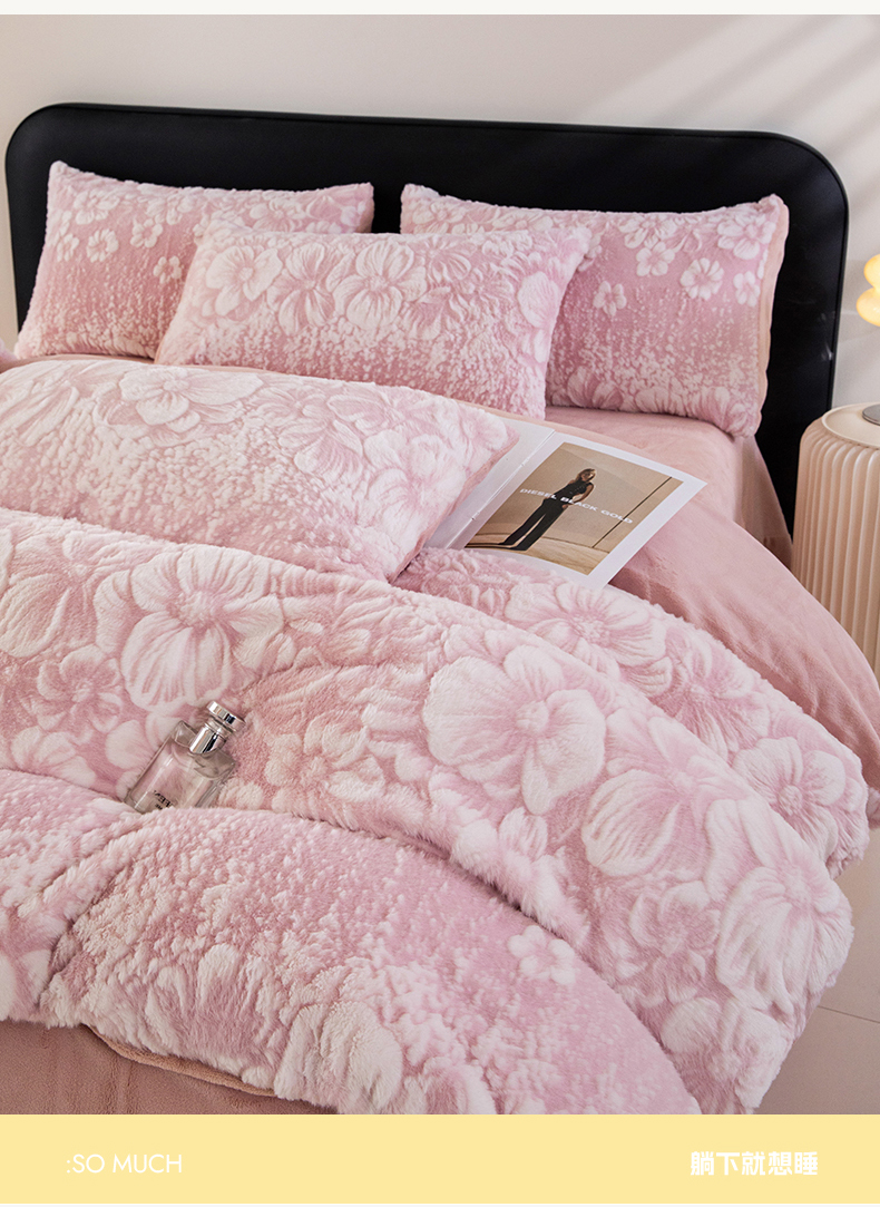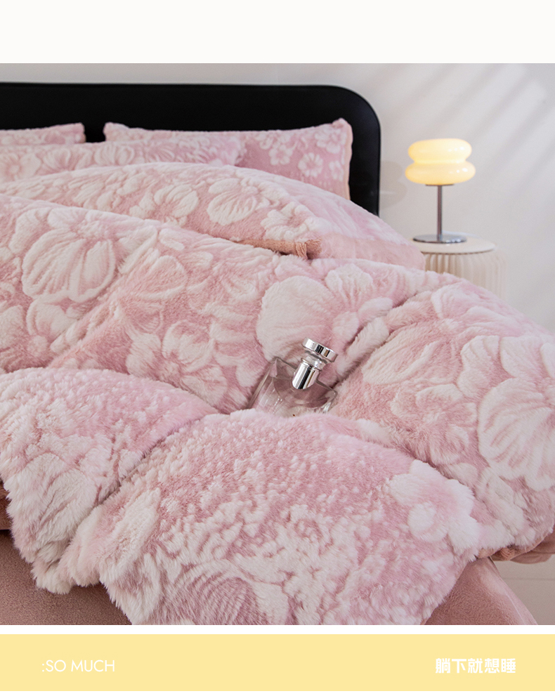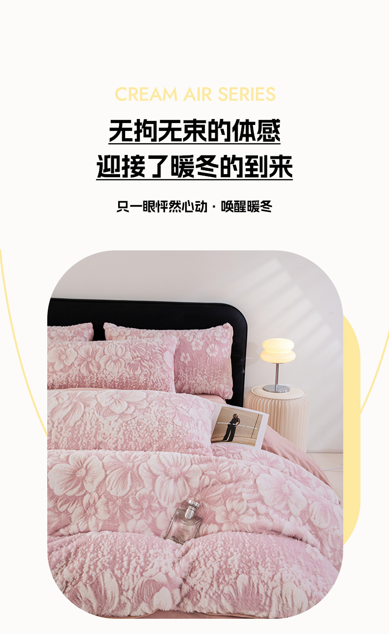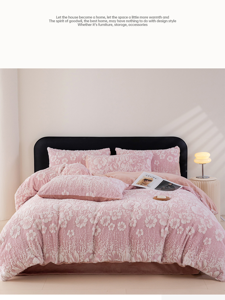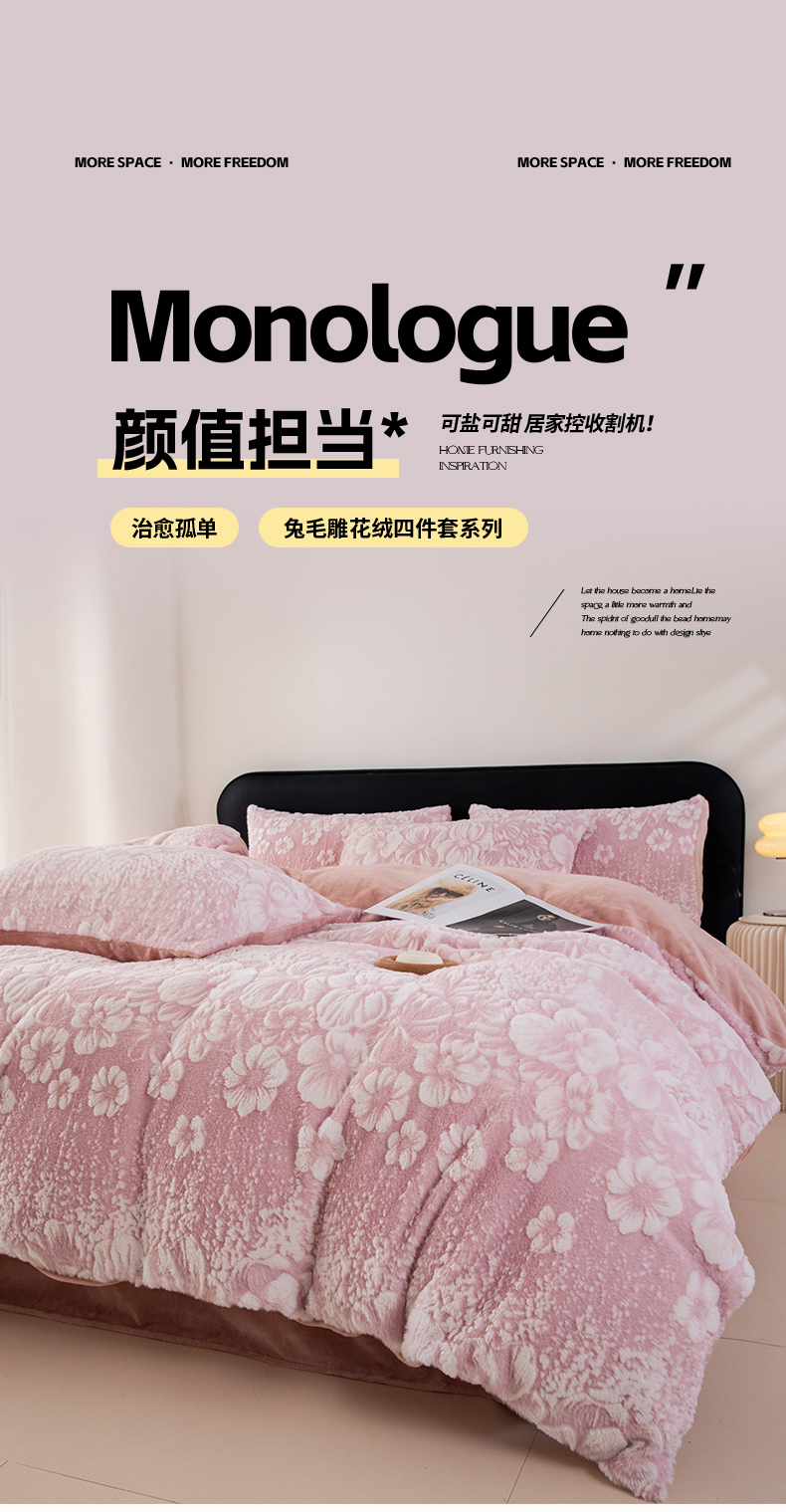 诺梵家纺 2025新款立体兔毛烂花四件套 伊莎-粉