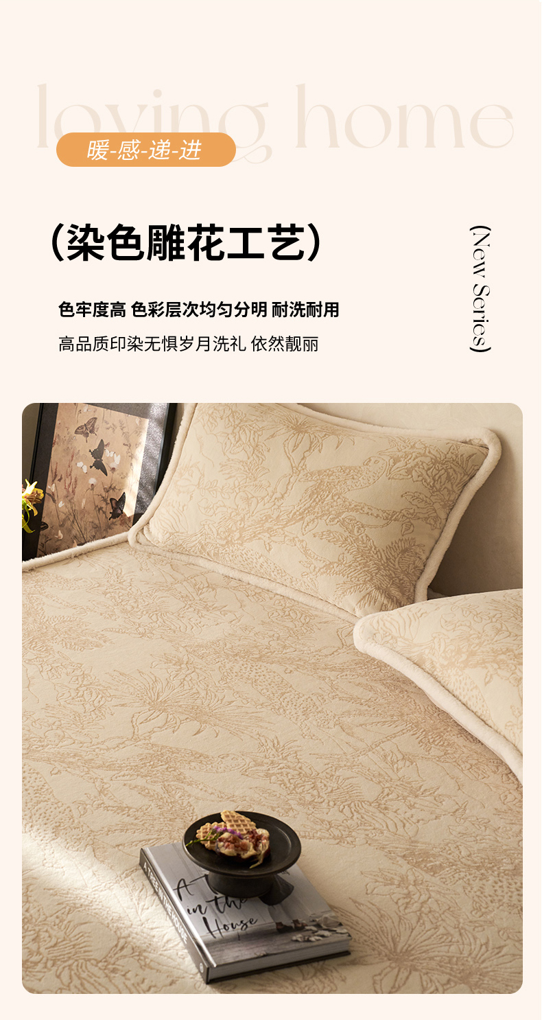 商品名称:宜代光年 2025新款A类小米貂复古牛奶绒染色雕花单床笠 丛林法则-咖