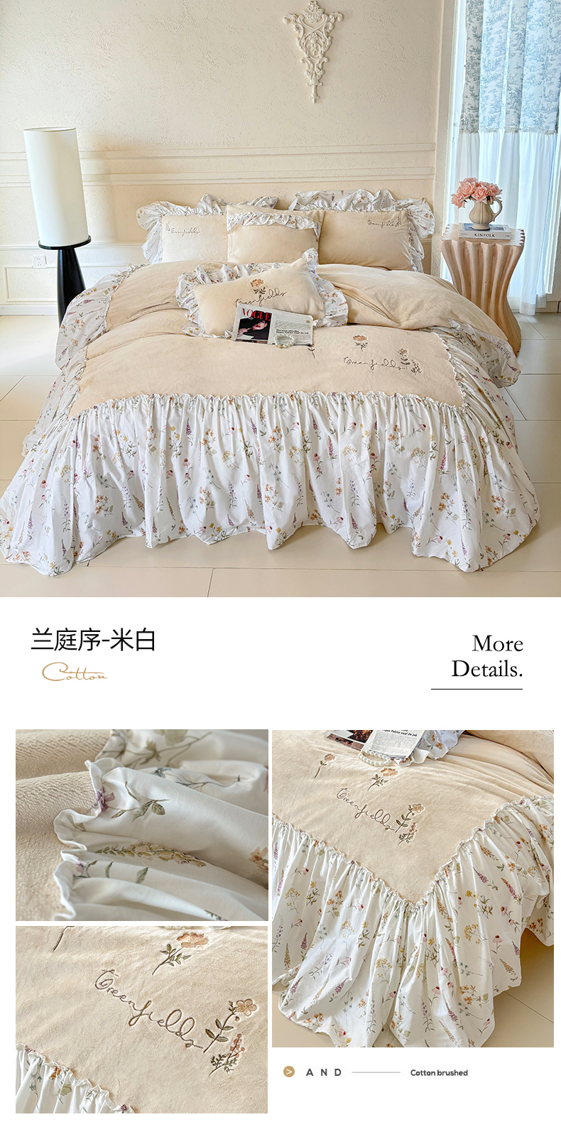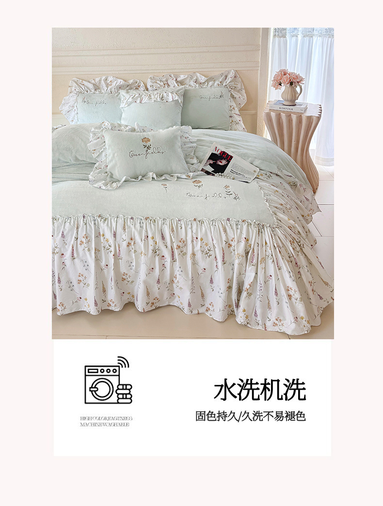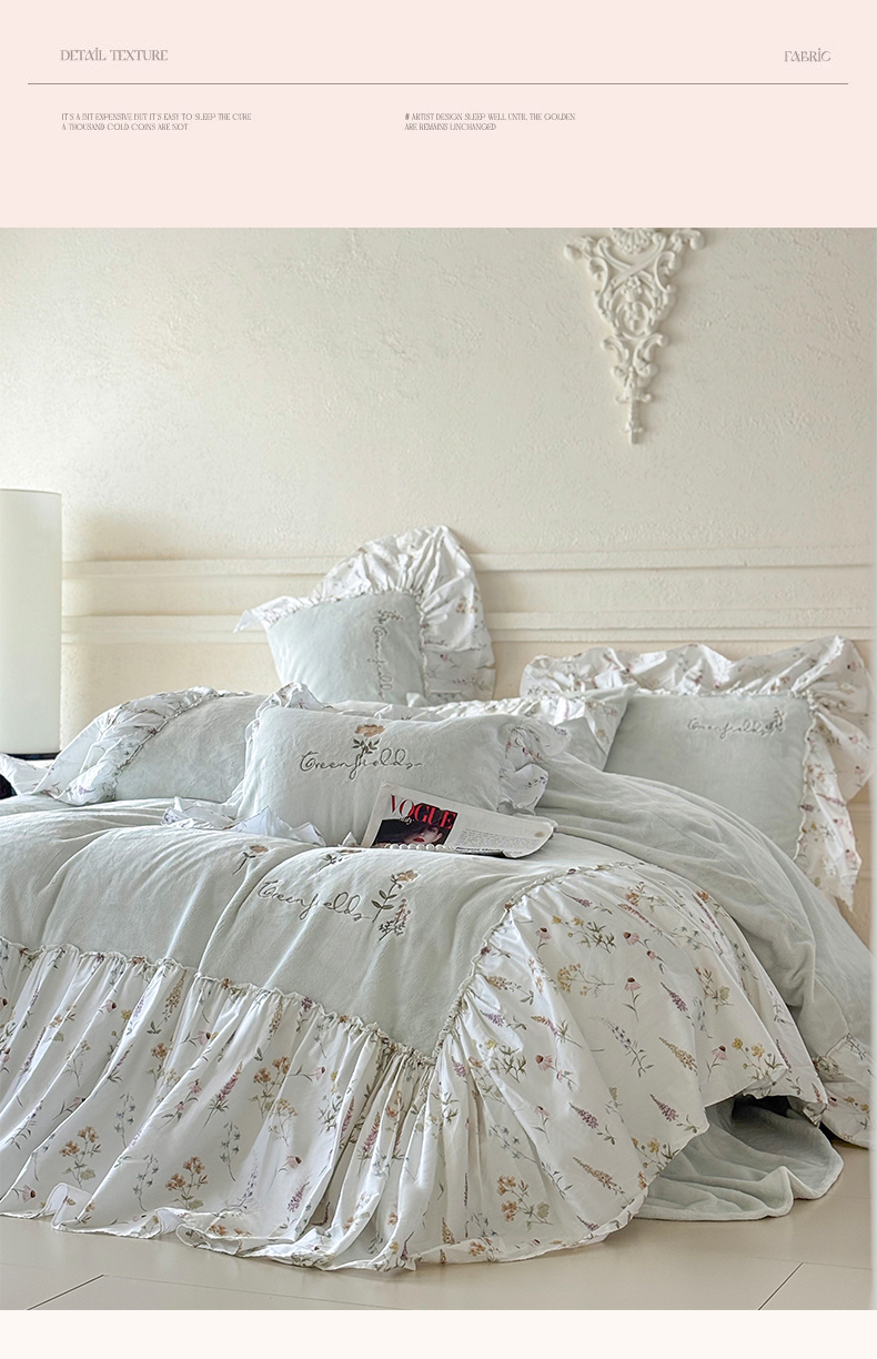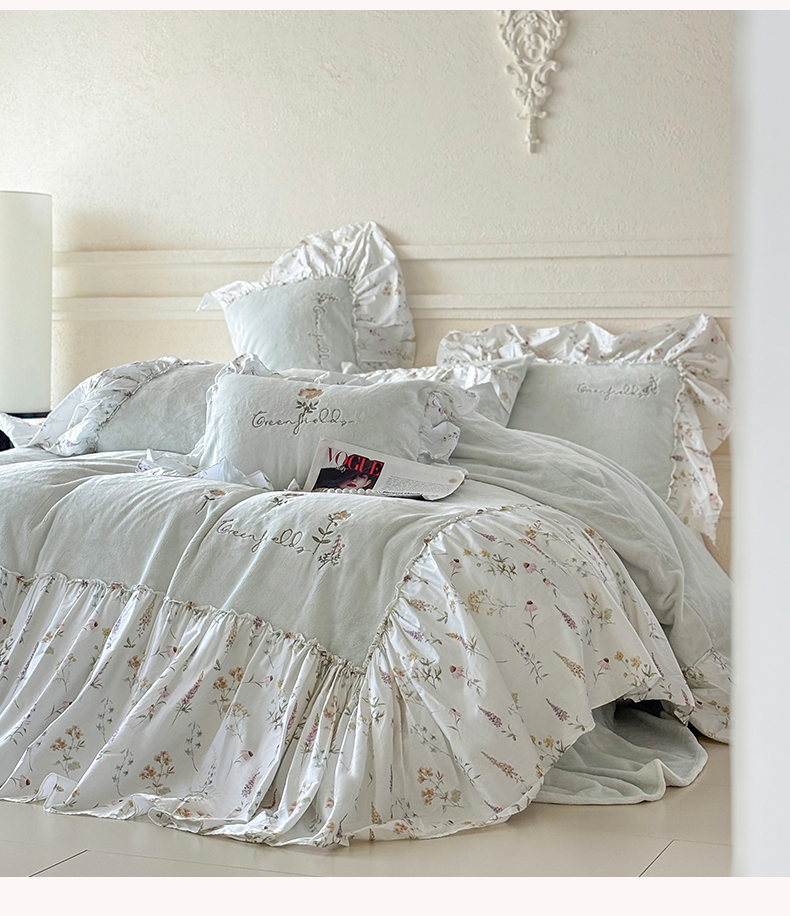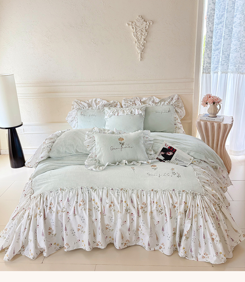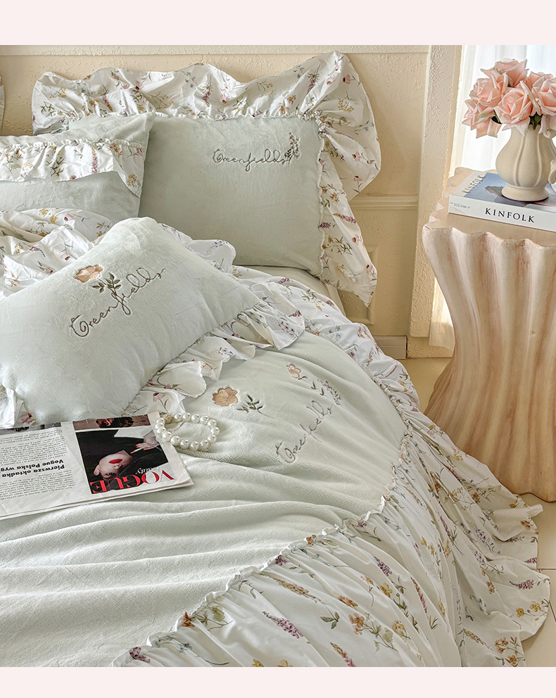 FORTWO家纺原创设计(FOR TWO家纺) 2025新款230克牛奶绒绣花法式花边款四件套 兰庭序-绿