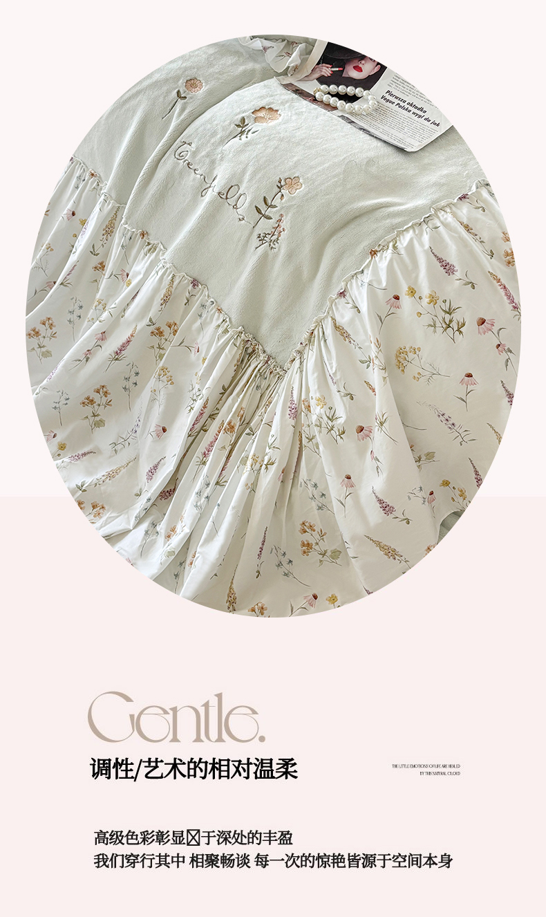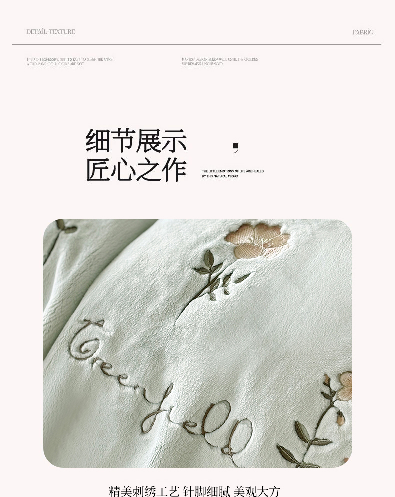 商品名称:FORTWO家纺原创设计(FOR TWO家纺) 2025新款230克牛奶绒绣花法式花边款四件套 兰庭序-绿