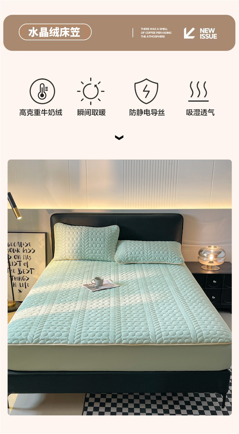 (总)希廷顿 2025新款速热水晶绒床笠,高级灰,宾利蓝,薄荷绿,藏青色,粉玉色,墨绿色,奶咖色,绅士灰,天空蓝,香芋紫