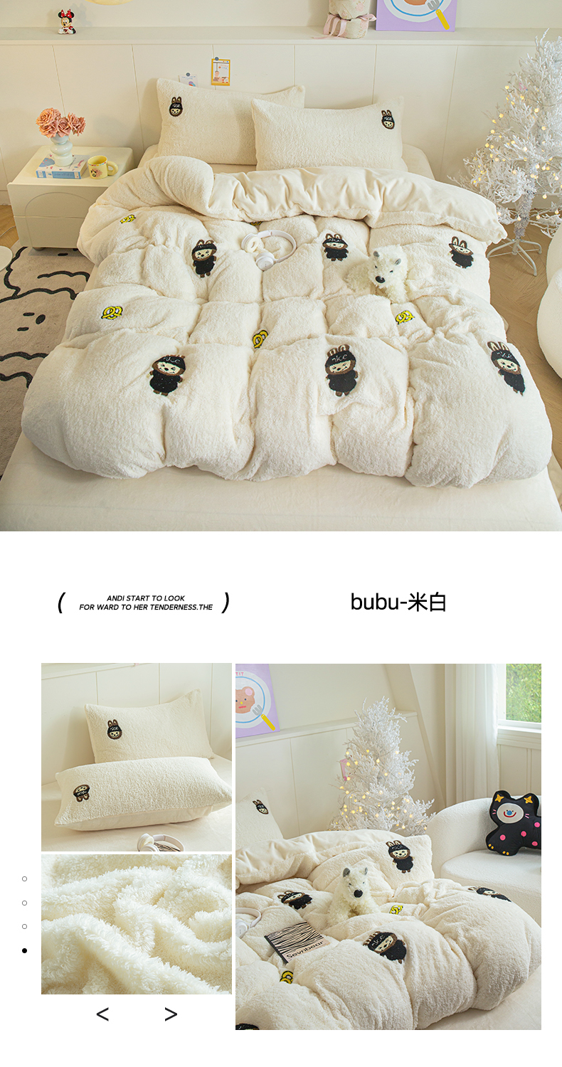 (总)庭笙 2025新款高克重泰迪绒毛巾刺绣牛奶绒四件套,bubu-米白,爱心-粉,爱心-紫,bubu-浅蓝,bubu-奶咖