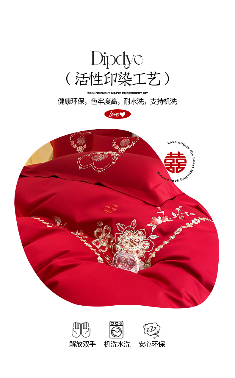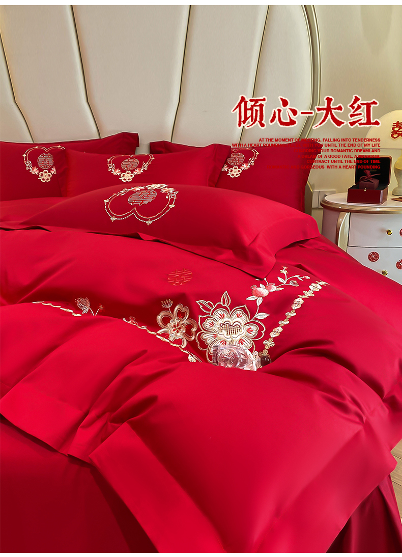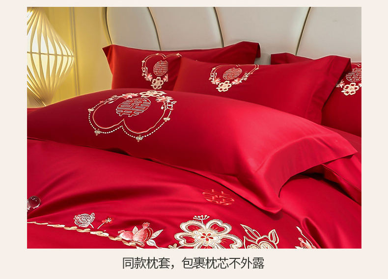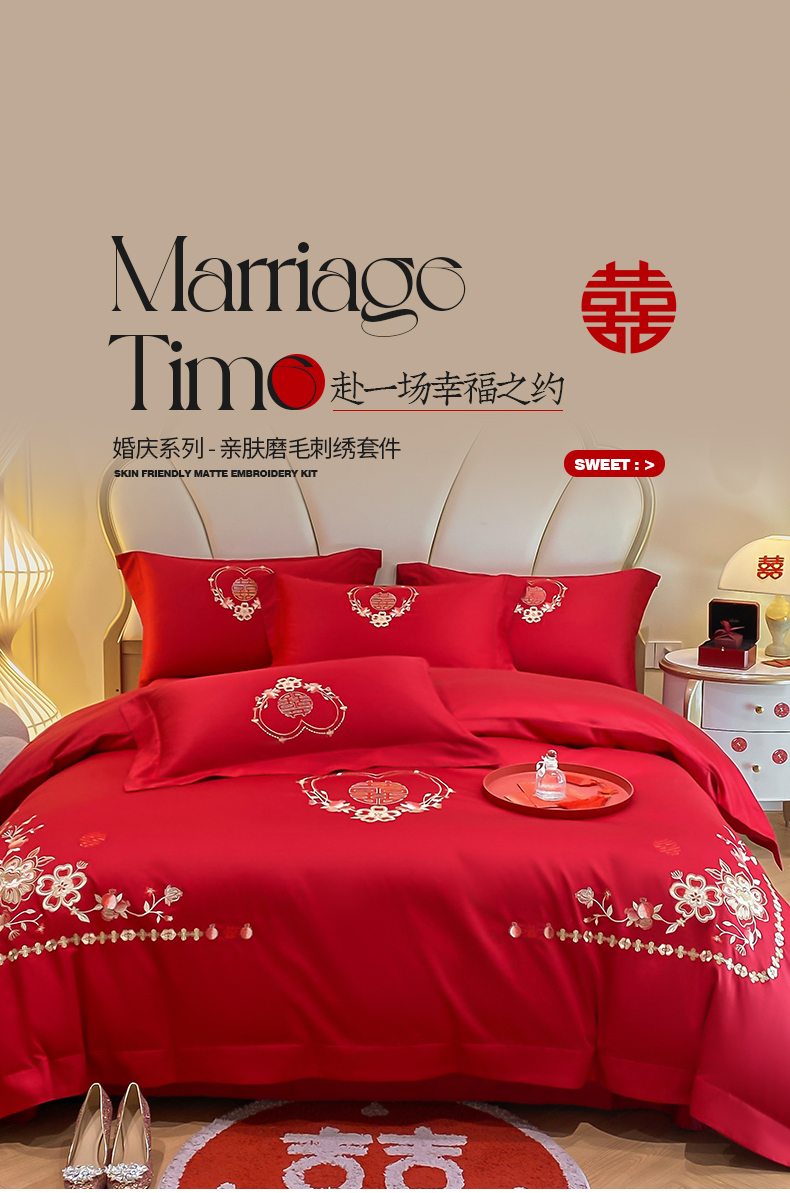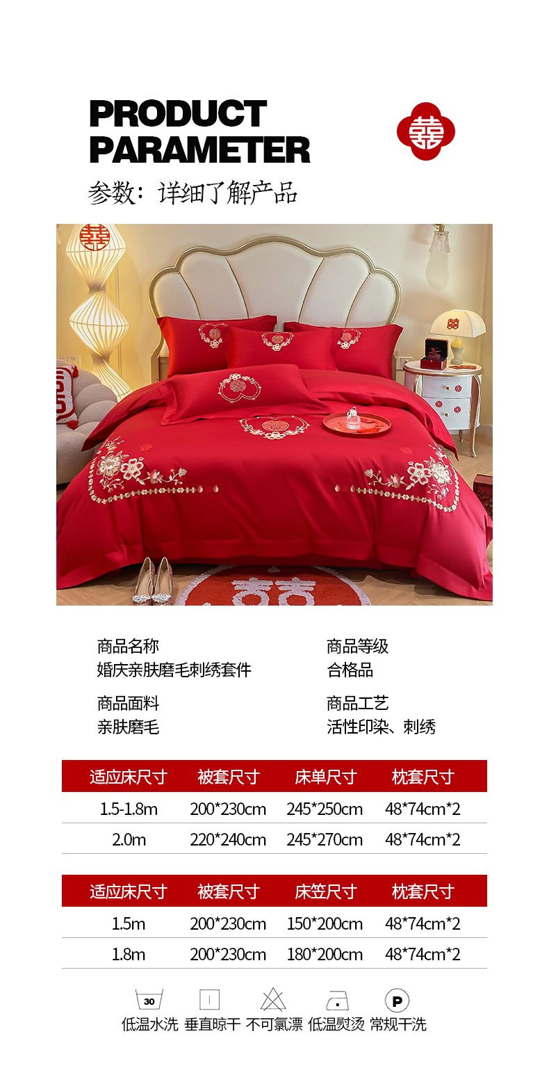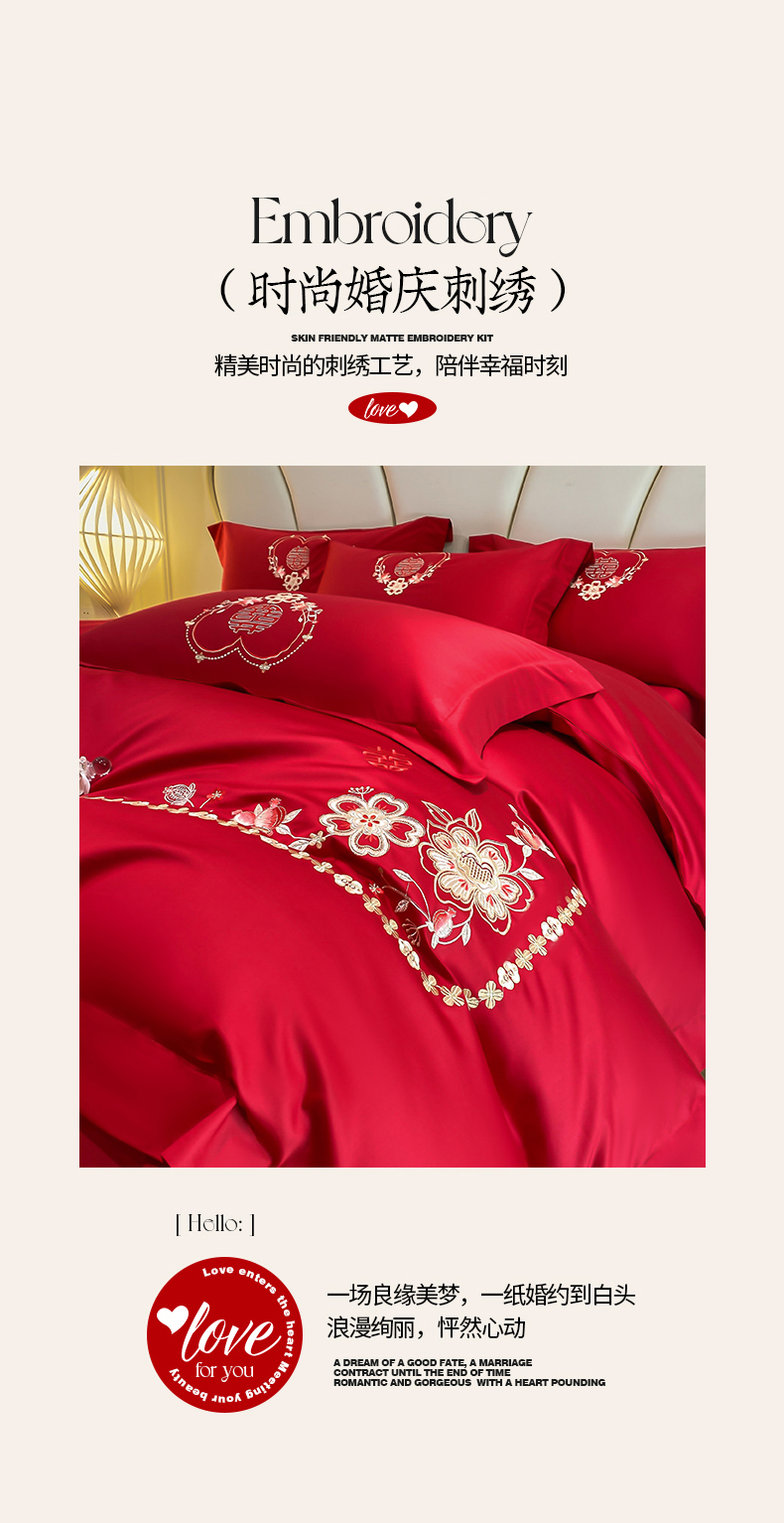 当前位置: 91家纺网 > 商品网购 > 床品套件 > 四件套 > 婚庆四件套 > 置顶家纺 2025新款亲肤磨毛刺绣婚庆四件套系列-棚拍 倾心-大红