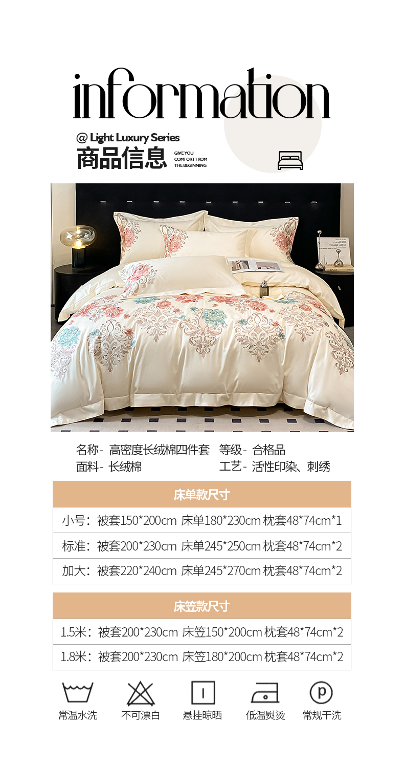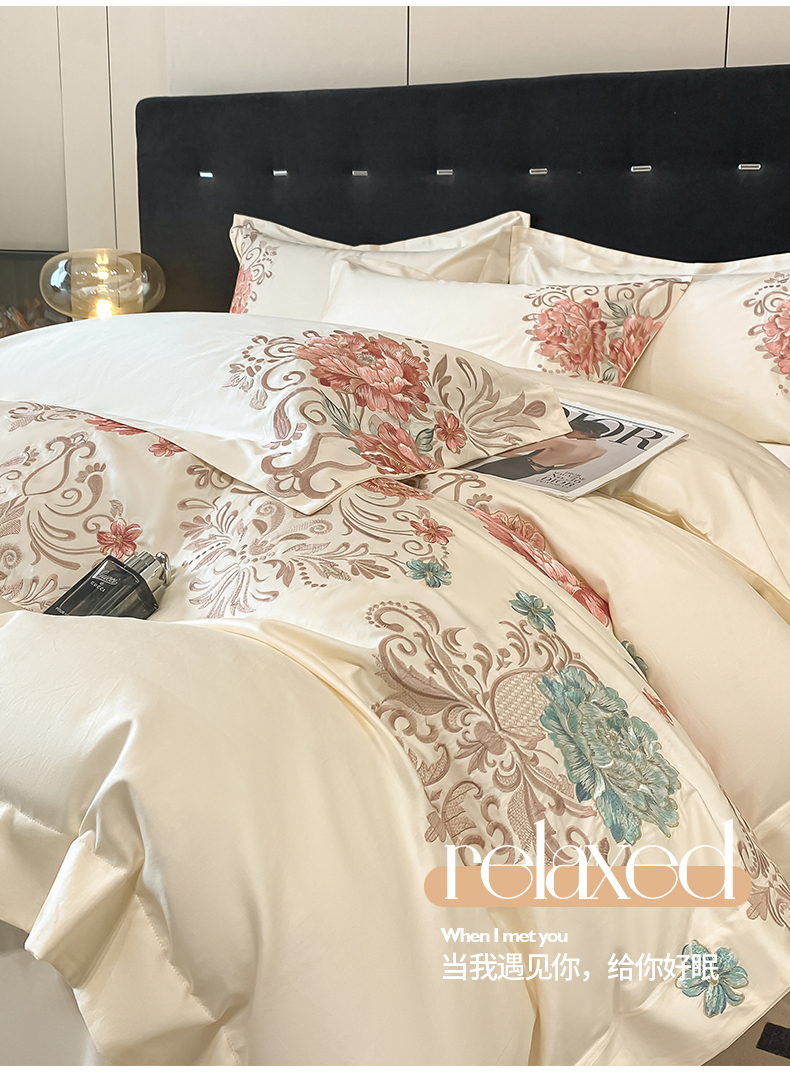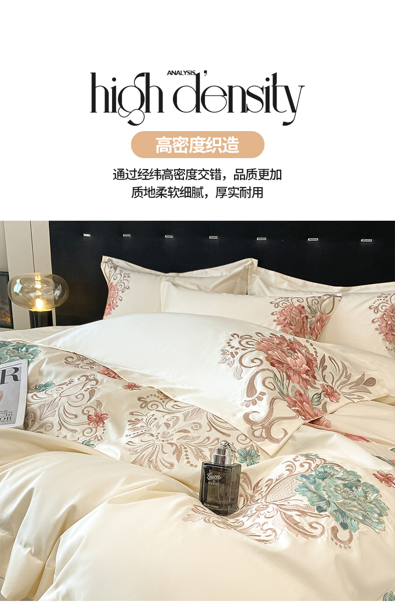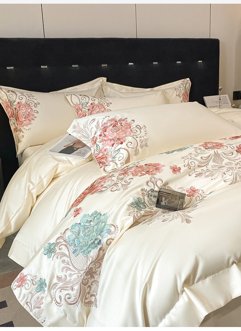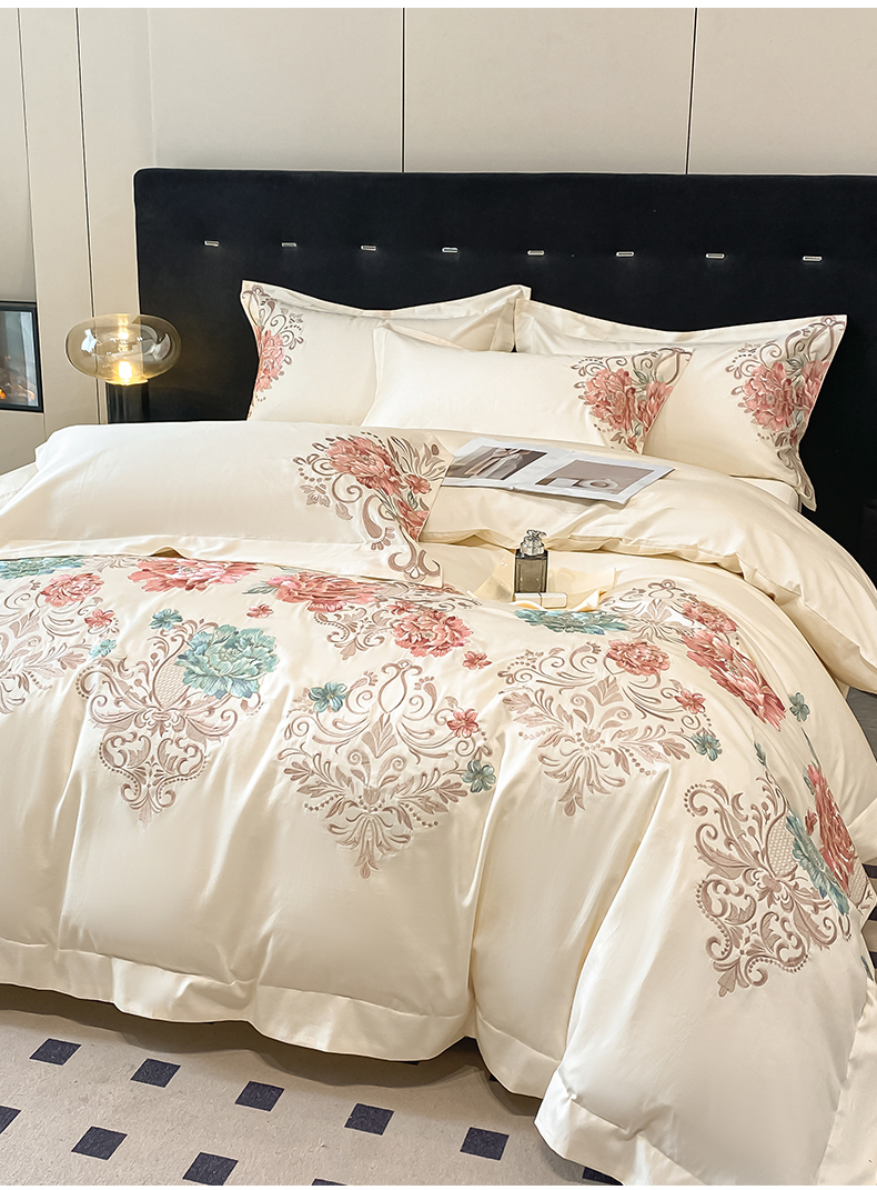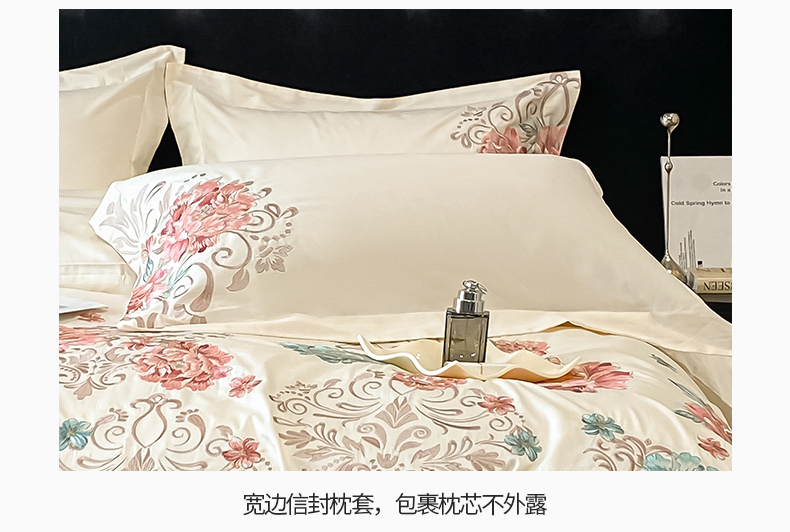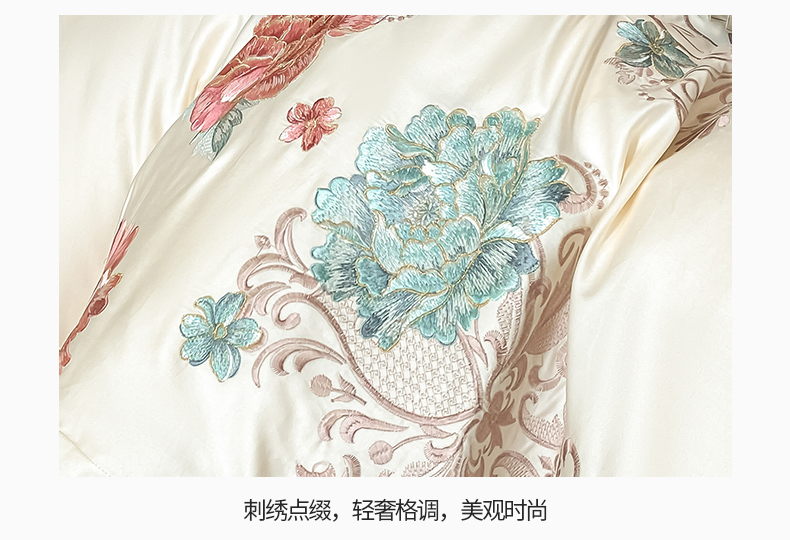 商品名称:置顶家纺 2025新款13372全棉拼接刺绣四件套-盛世花悦 盛世花悦-奶昔白