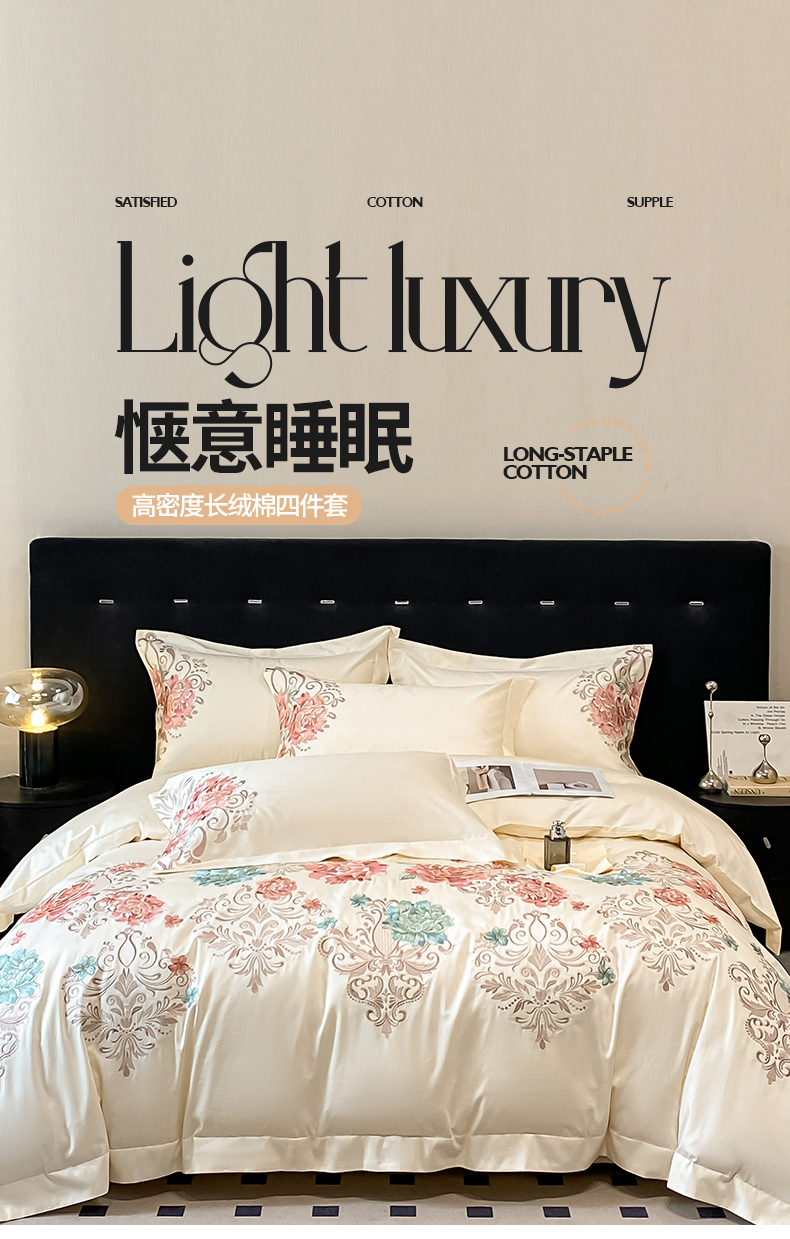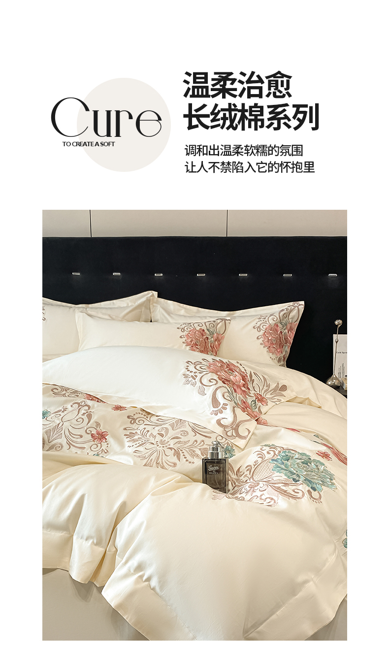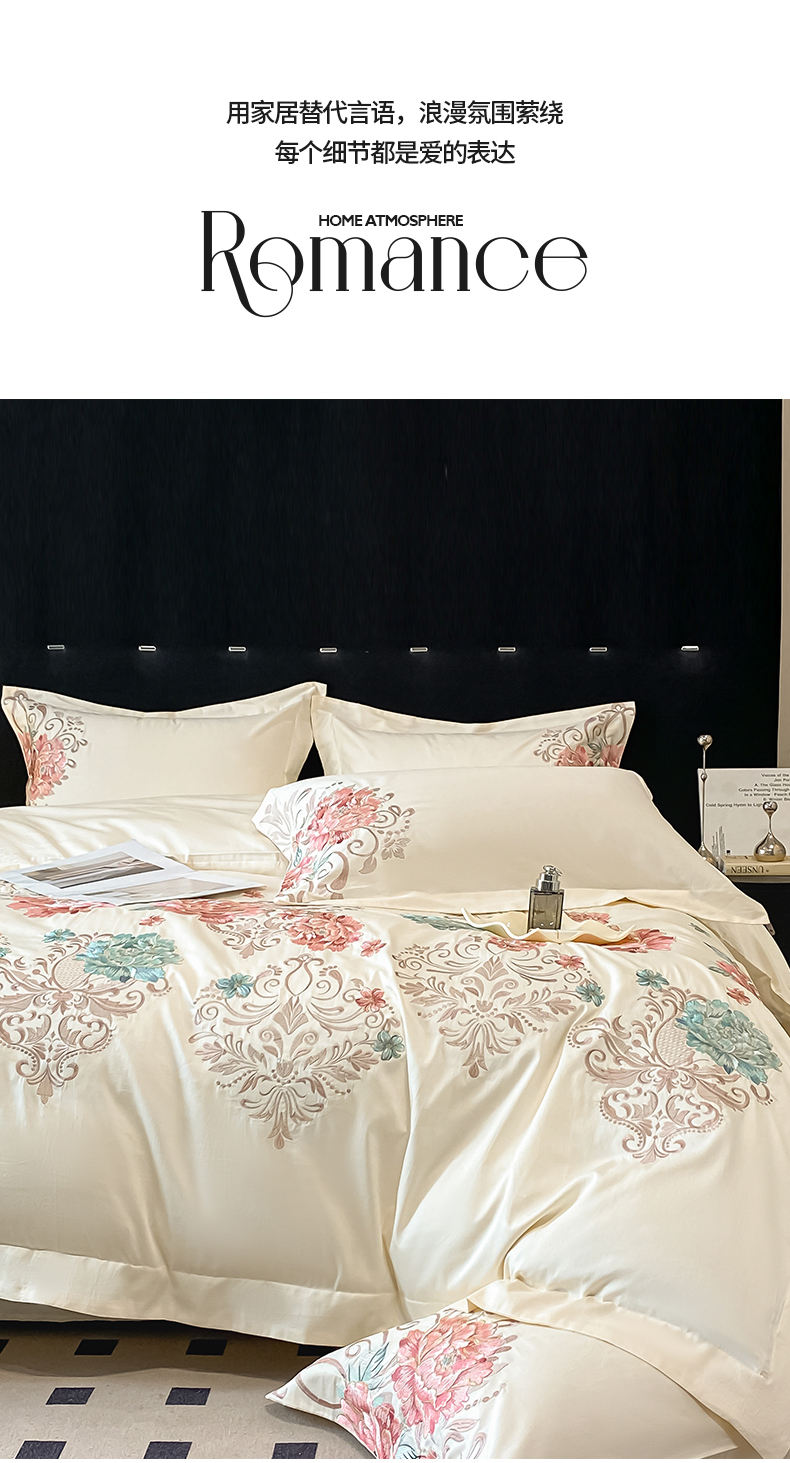 (总)置顶家纺 2026新款亲肤棉玫瑰刺绣提花卡罗拉系列四件套,卡罗拉-碧蓝,卡罗拉-魅粉,卡罗拉-浅香槟,卡罗拉-天空蓝