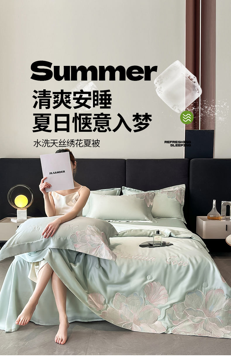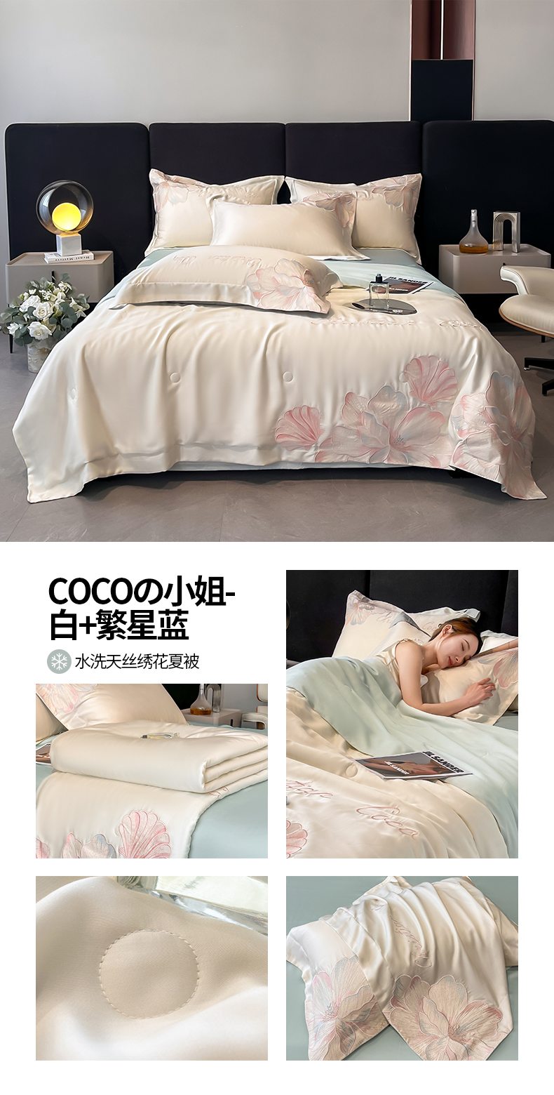 当前位置: 91家纺网 > 商品网购 > 床品套件 > 四件套 > 夏被四件套 > 置顶家纺 2025新款水洗天丝夏被四件套-coco小姐 COCO小姐-繁星蓝
