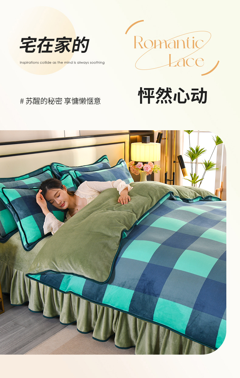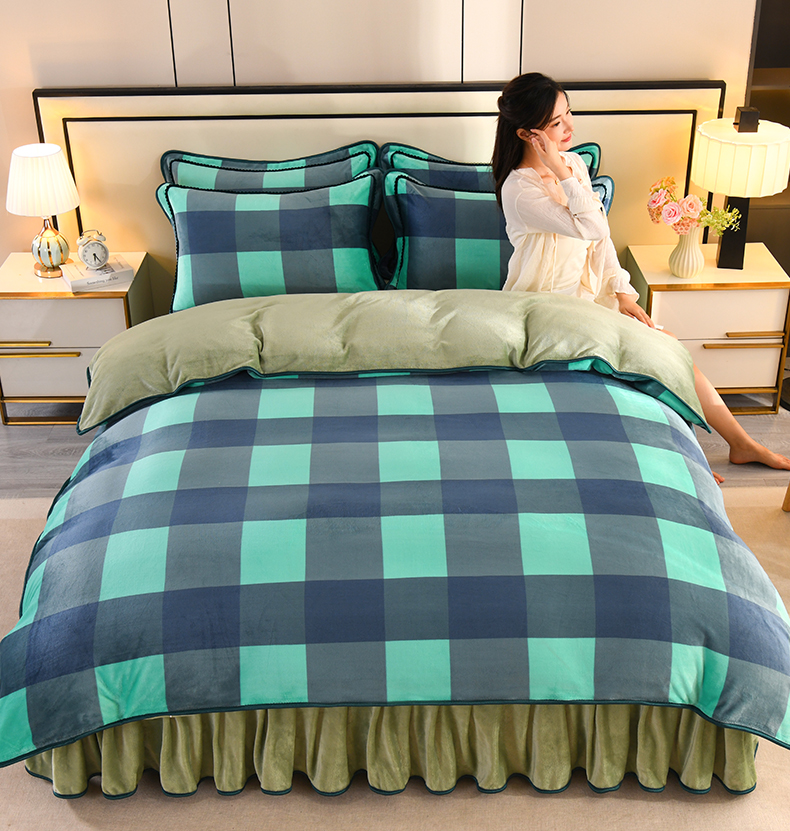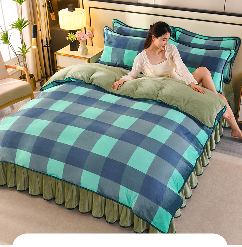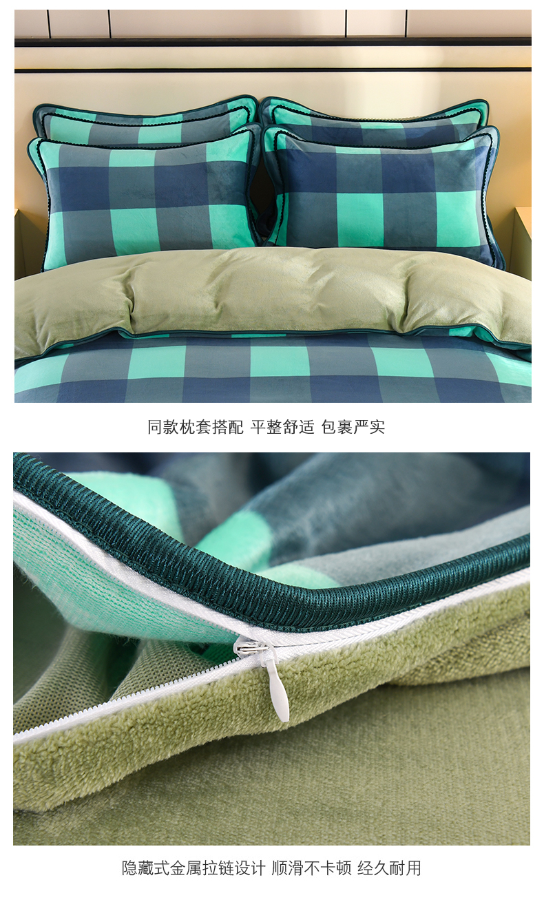 商品名称:2025新款高克重8斤金貂绒牛奶绒四件套 大格-绿