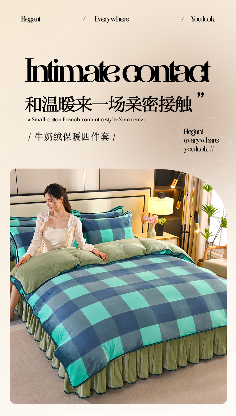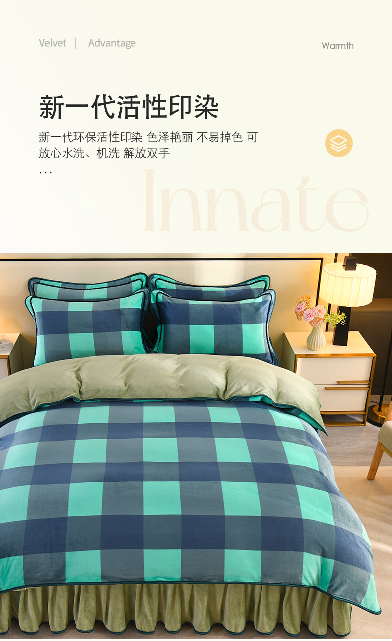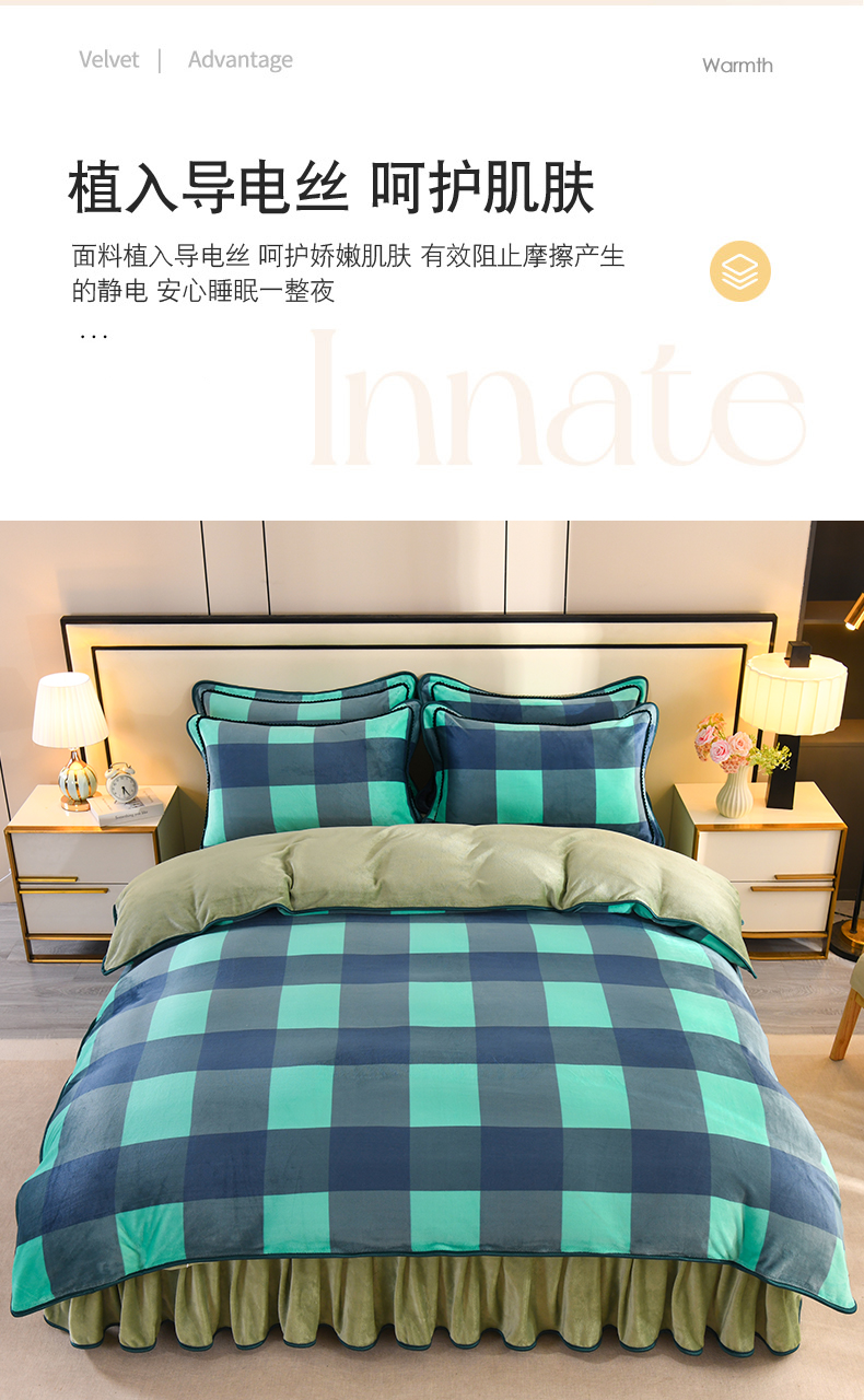 商品名称:2025新款高克重8斤金貂绒牛奶绒四件套 大格-绿