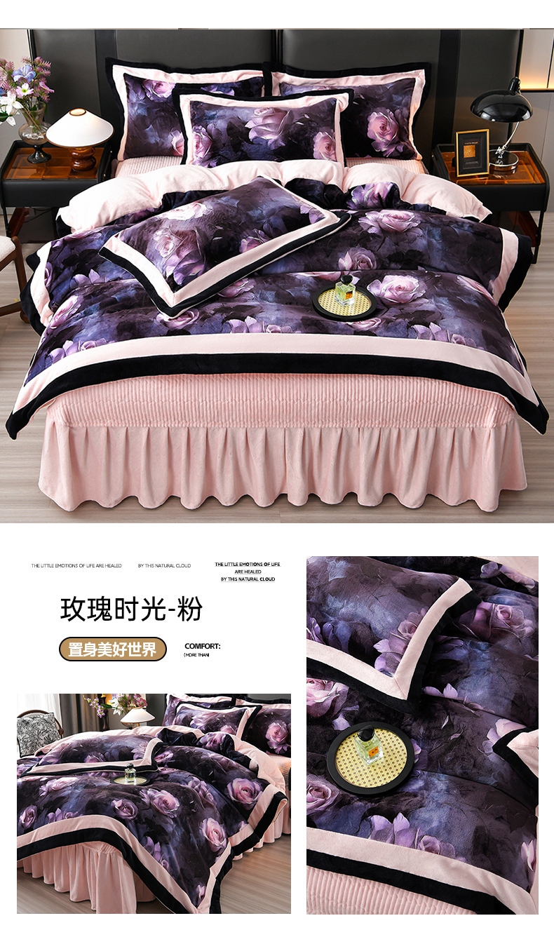 当前位置: 91家纺网 > 商品网购 > 床品套件 > 四件套 > 牛奶绒四件套 > 馨梦缘 2025新款牛奶绒数码印花四件套 玫瑰时光-粉