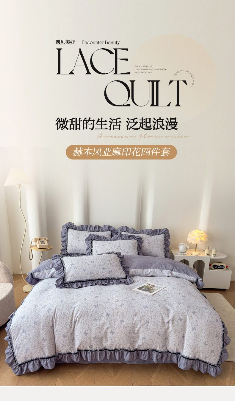 (总)可思家纺 2024新款韩版花边木棉皱皱纱四件套系列,安娜,蝶舞,芳华,粉佳人,格子控,赫本花园,花恋,花与兔,简爱,罗马假日,秘境,莫奈花园,秋实,桃夭,兔兔乐园,小玫瑰,小樱桃,学院派,雅梦,伊人,悠然,繁华,奶油少女,清欢,似锦,紫薰,紫郁